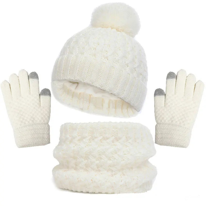 Kinder Wintermütze Schal und Handschuhe Luxus Set Gestrickte Wolle Kinder Warmer Anzug Beanie Caps Für Jungen Mädchen Mütze Halstuch Babymütze - 1008-weiß ist auf Lager und wird versandt, sobald es wieder verfügbar ist