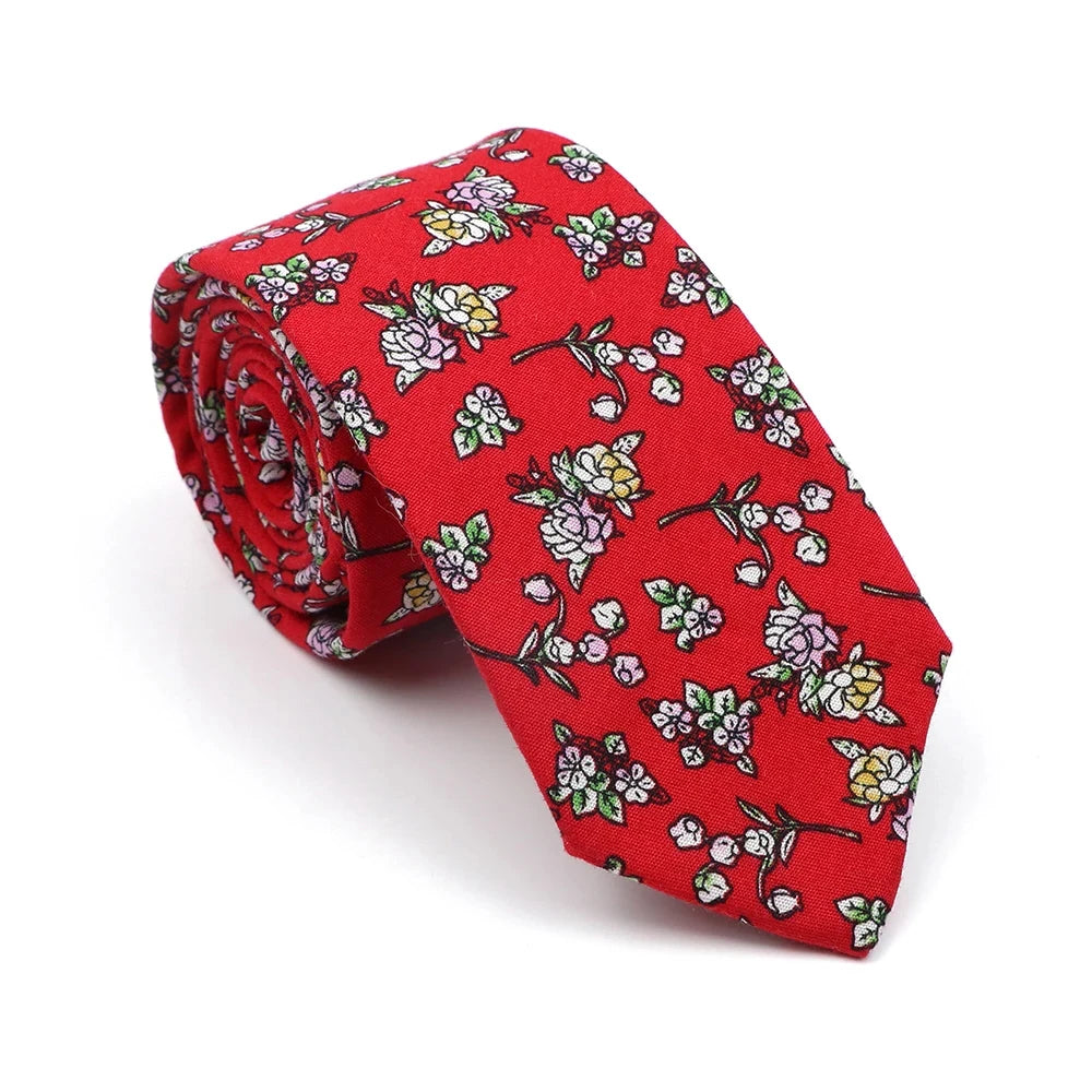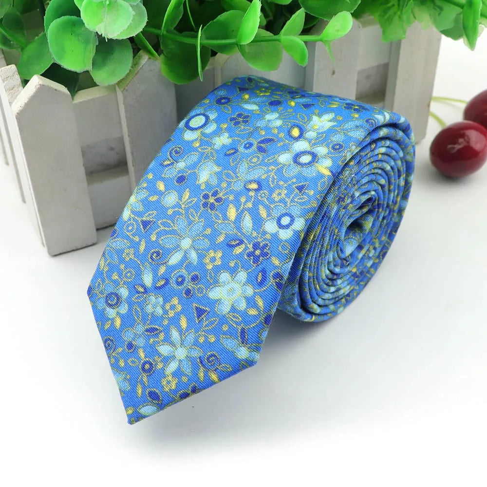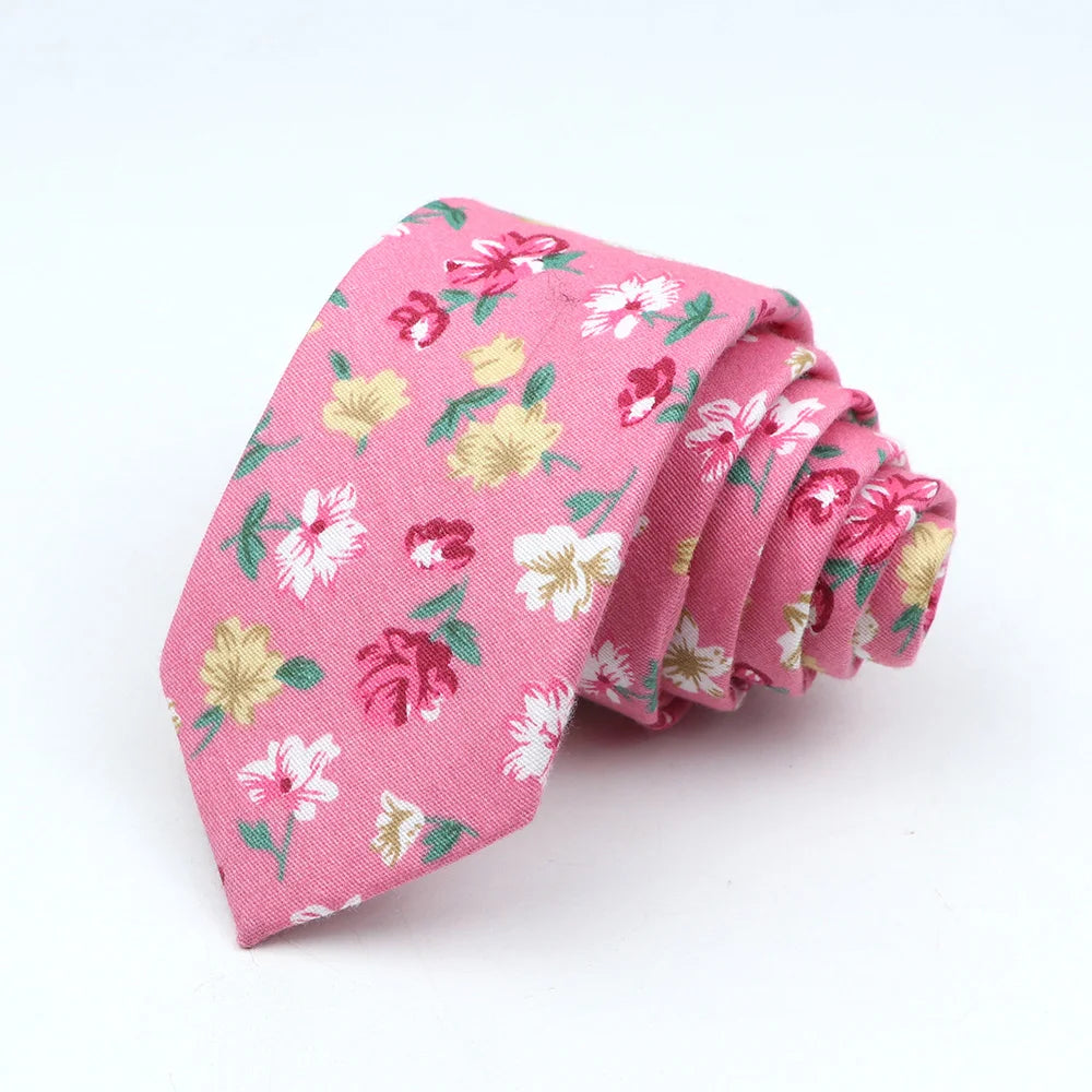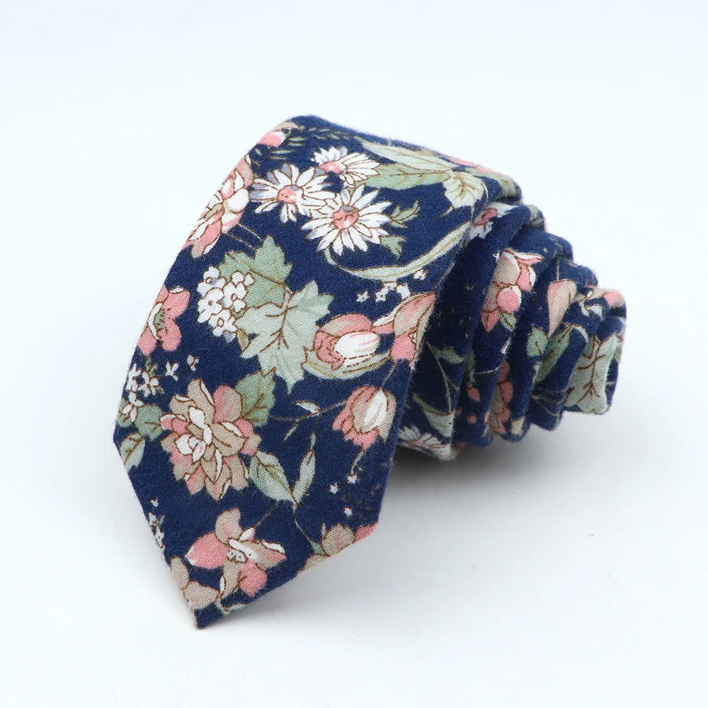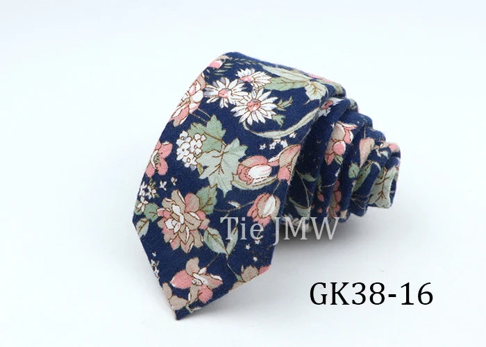 New Men's Floral Neck Ties Casual Cotton Slim Tie Skinny Wedding Party Suit Collar Flower Neckties Gravata Accessories Gift
