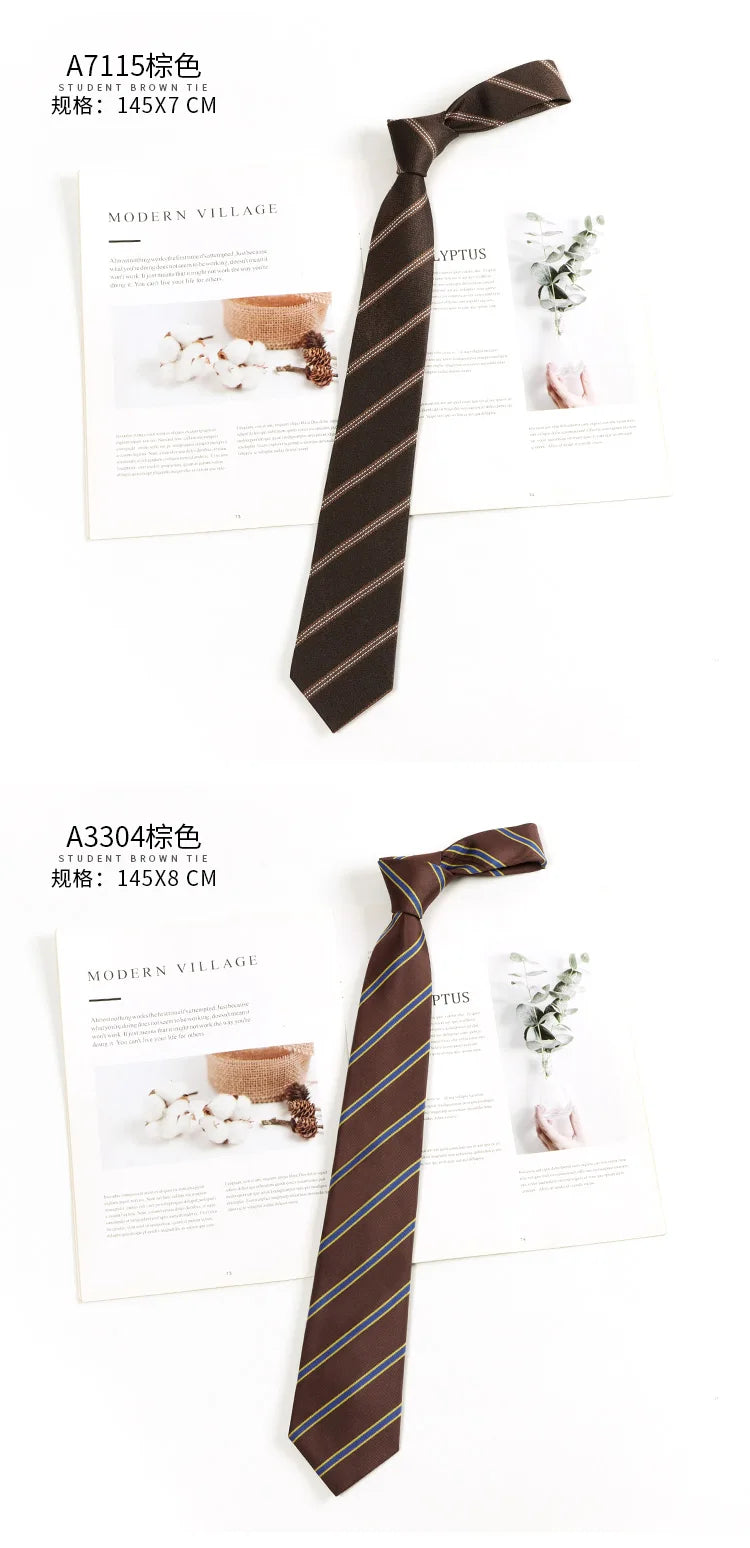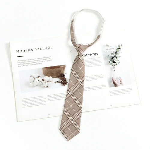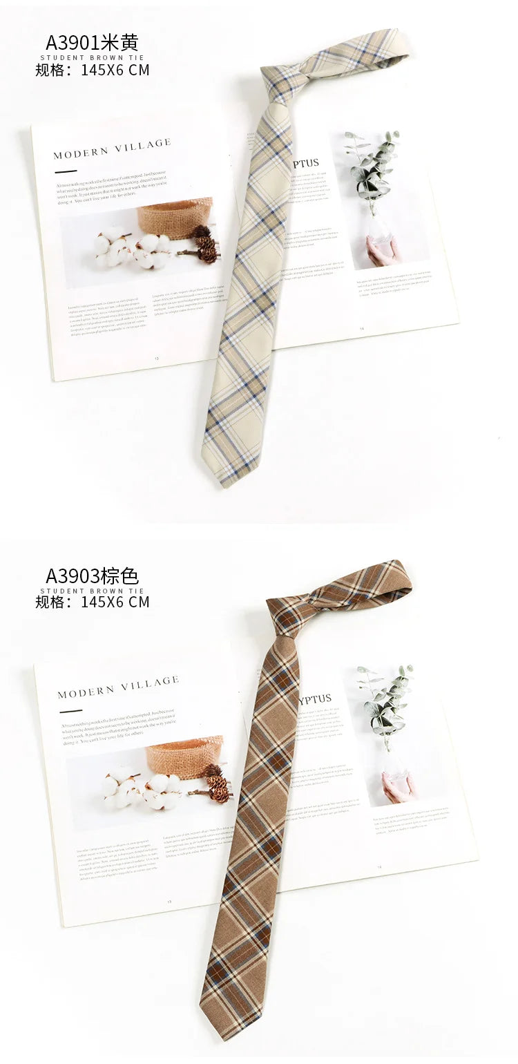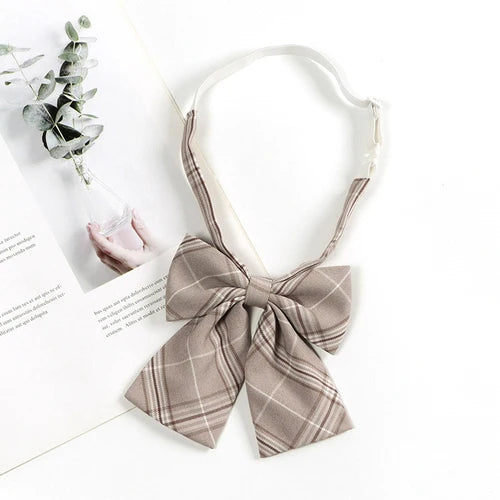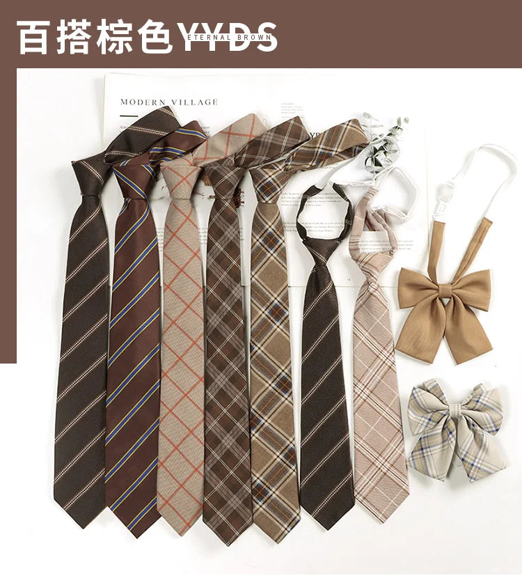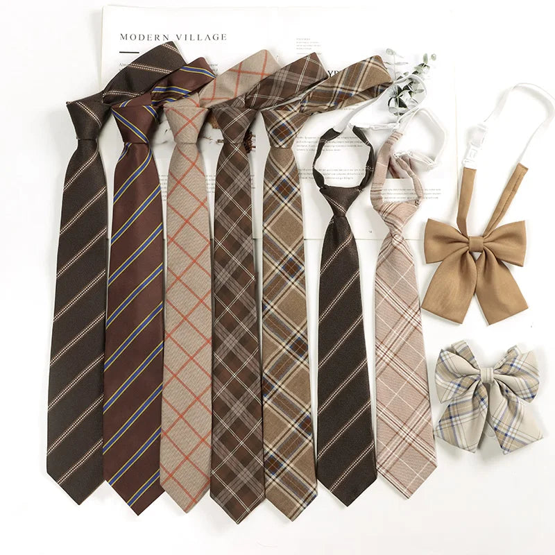 Brown Retro Plaid Striped Lazy-Free Japanese Style Brown Tie Women's Junior Wear Bow Tie College Style Men's Fashionmariage bleu