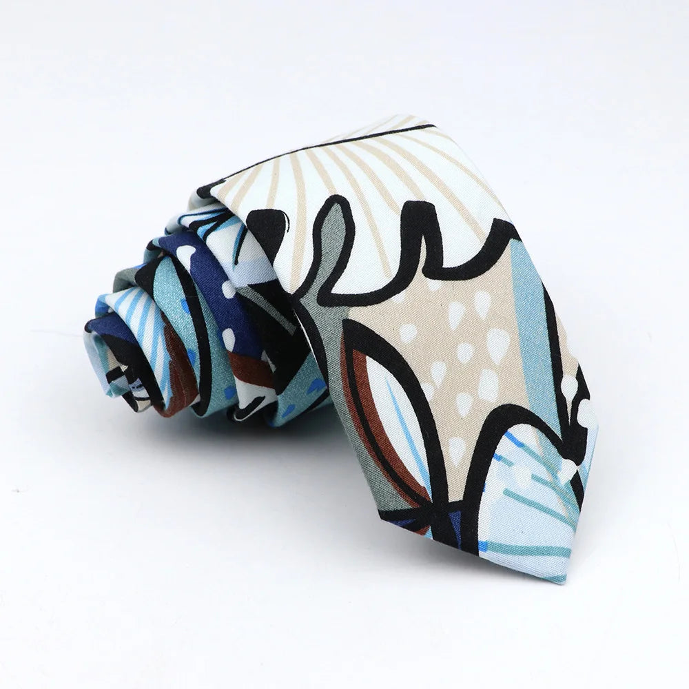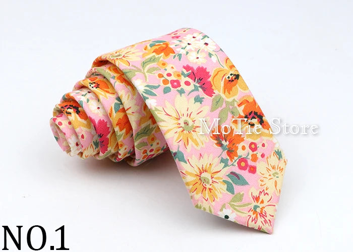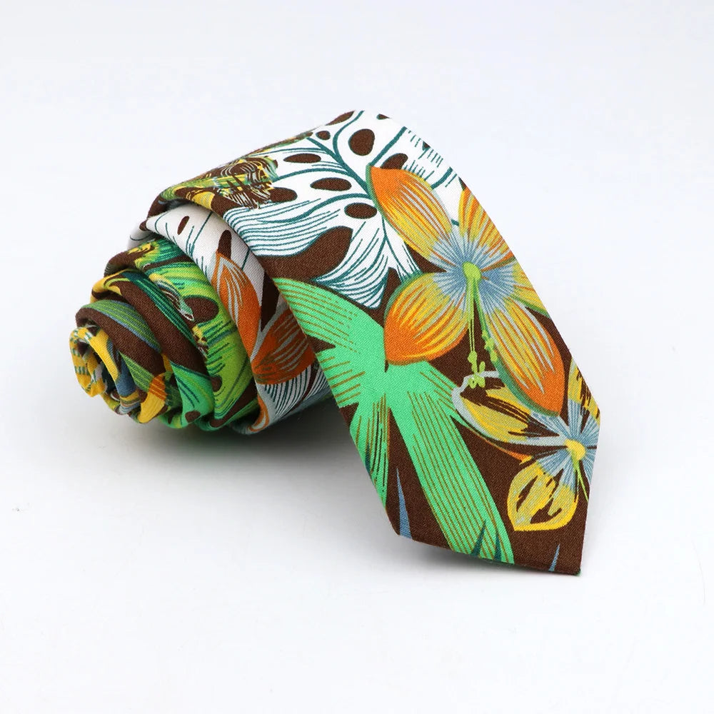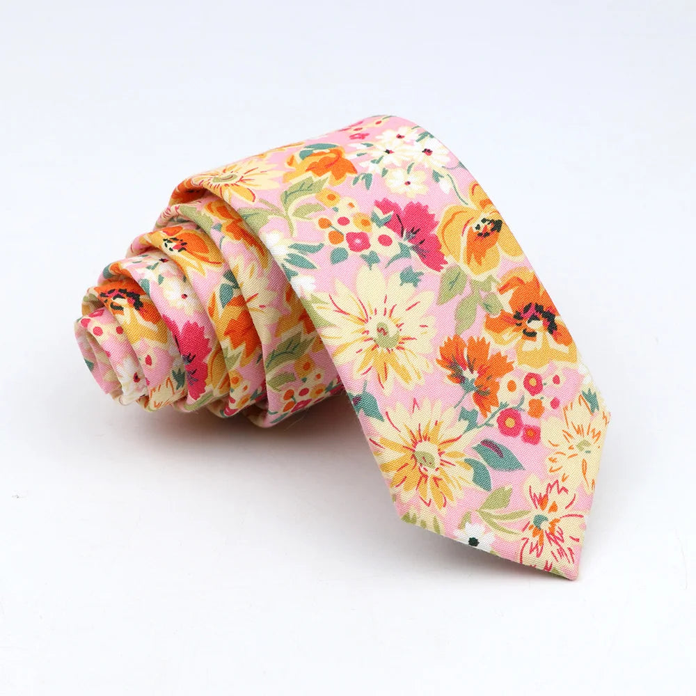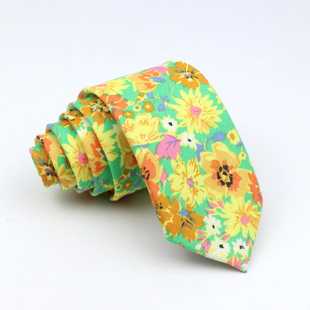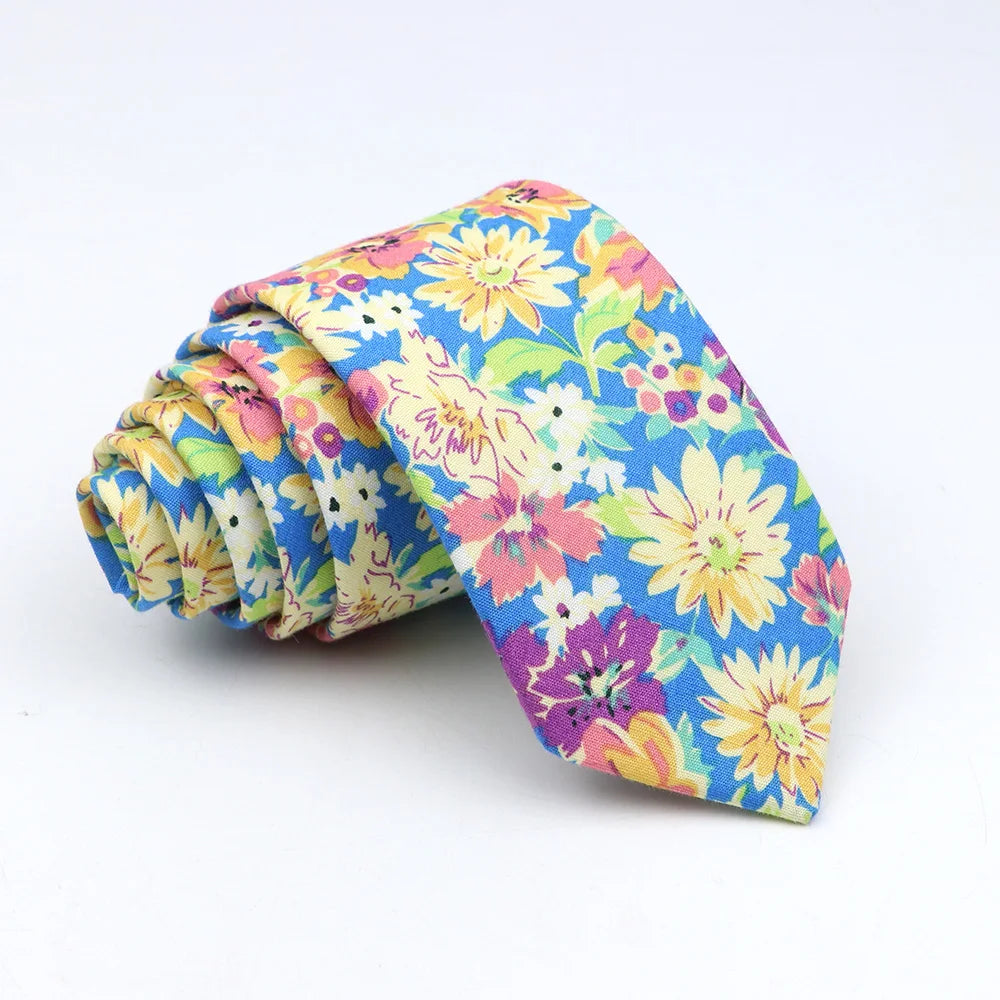 New Floral Tie For Men Women Skinny Casual 100% Cotton Casual Flower Print Skinny Neck Tie For Wedding Party Suits Tie Cravat