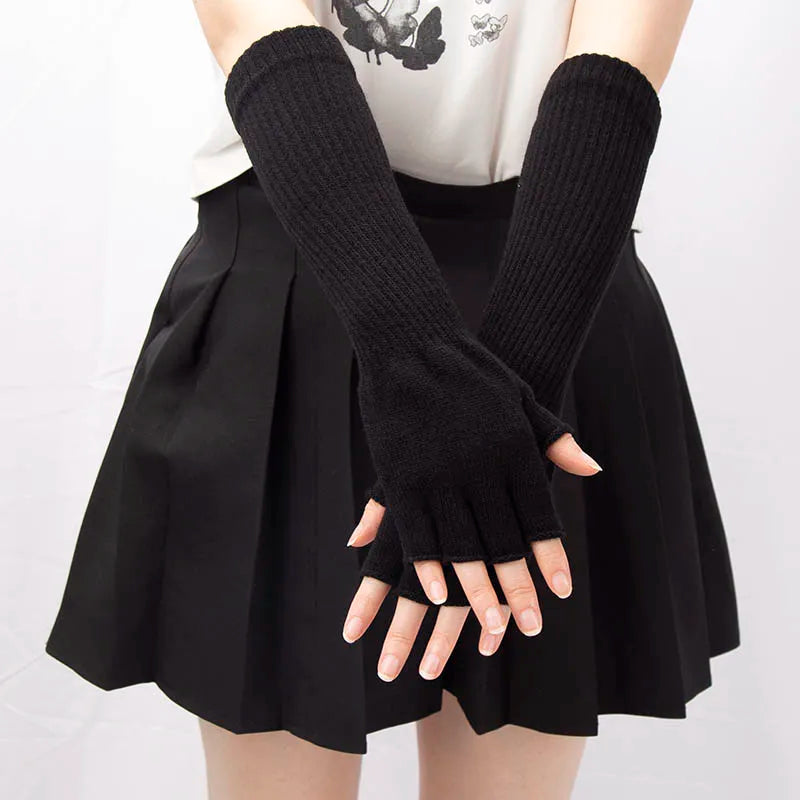 1 Paar schwarze fingerlose Unisex-Halbfingerhandschuhe für Damen und Herren, Wollstrick-Handgelenk, Baumwolle, Gothic-Handschuhe, warme Trainingshandschuhe für den Winter