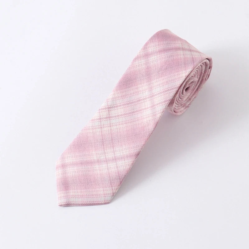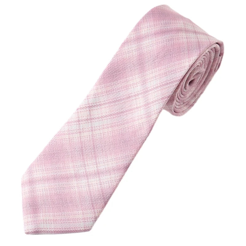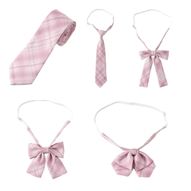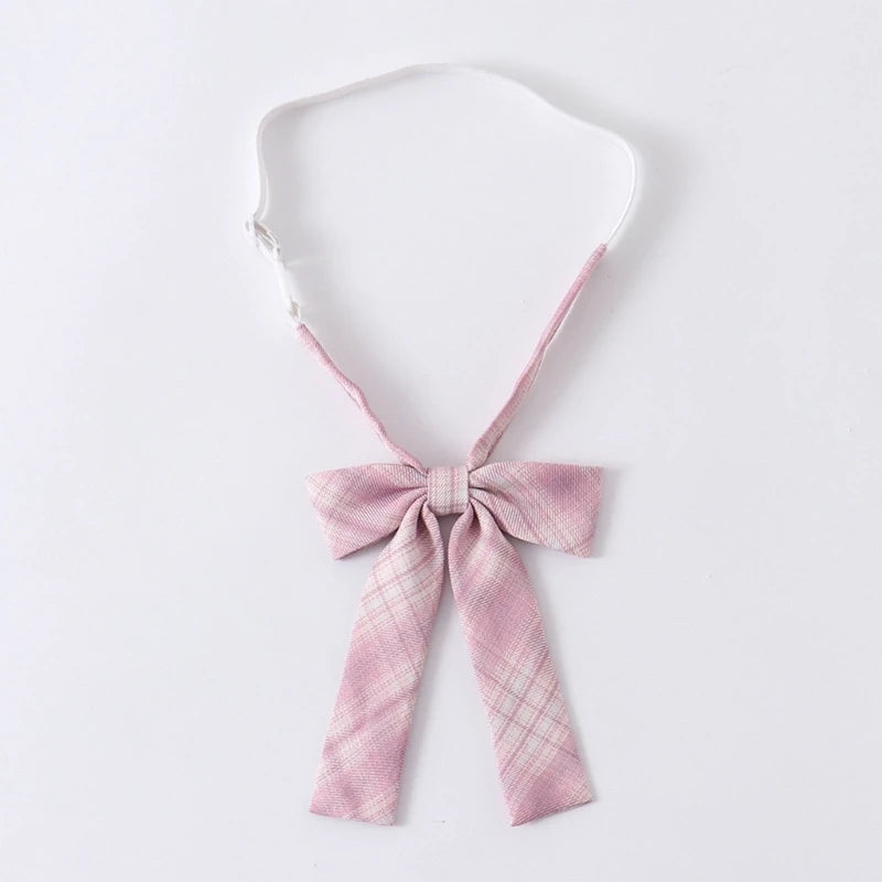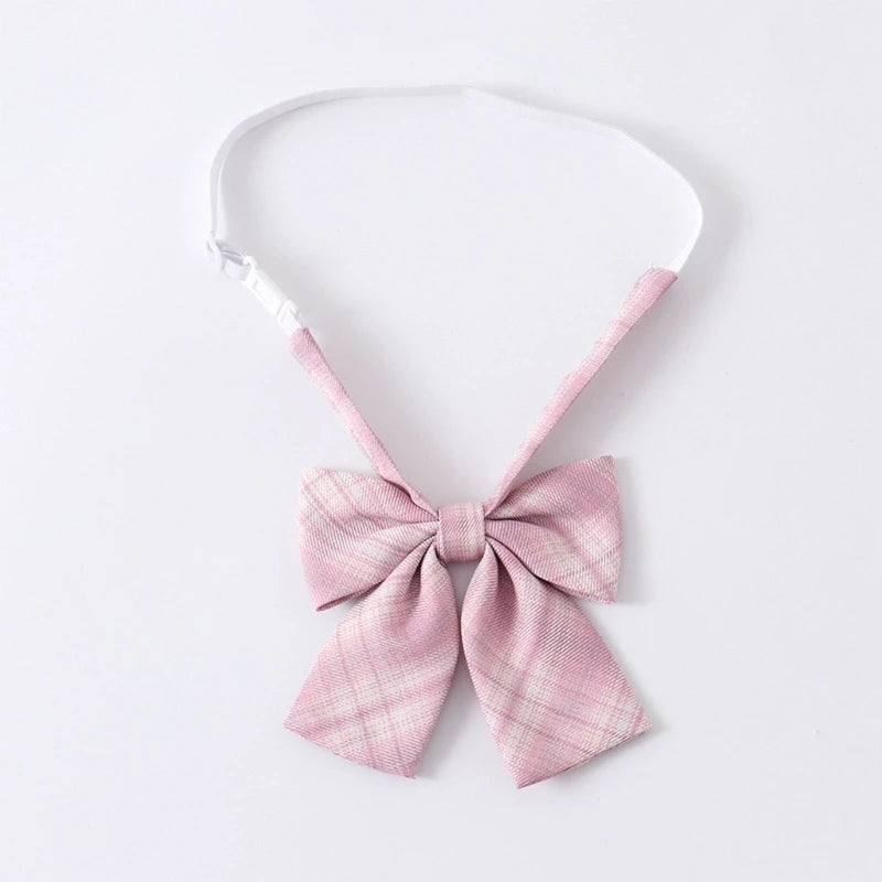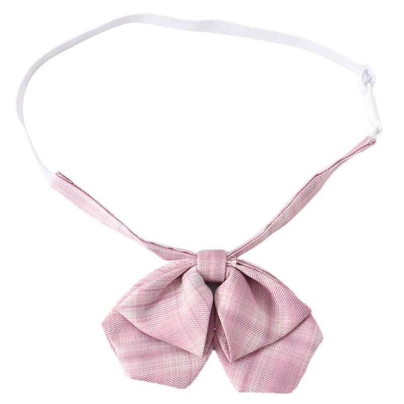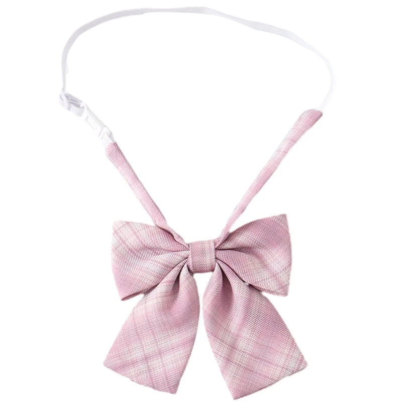 Adjusted Pre-Tied Necktie Elegant Pink Checkered Neck Tie Japanese JK Cosplay Bowtie Bowknot for School Uniform Neckwear