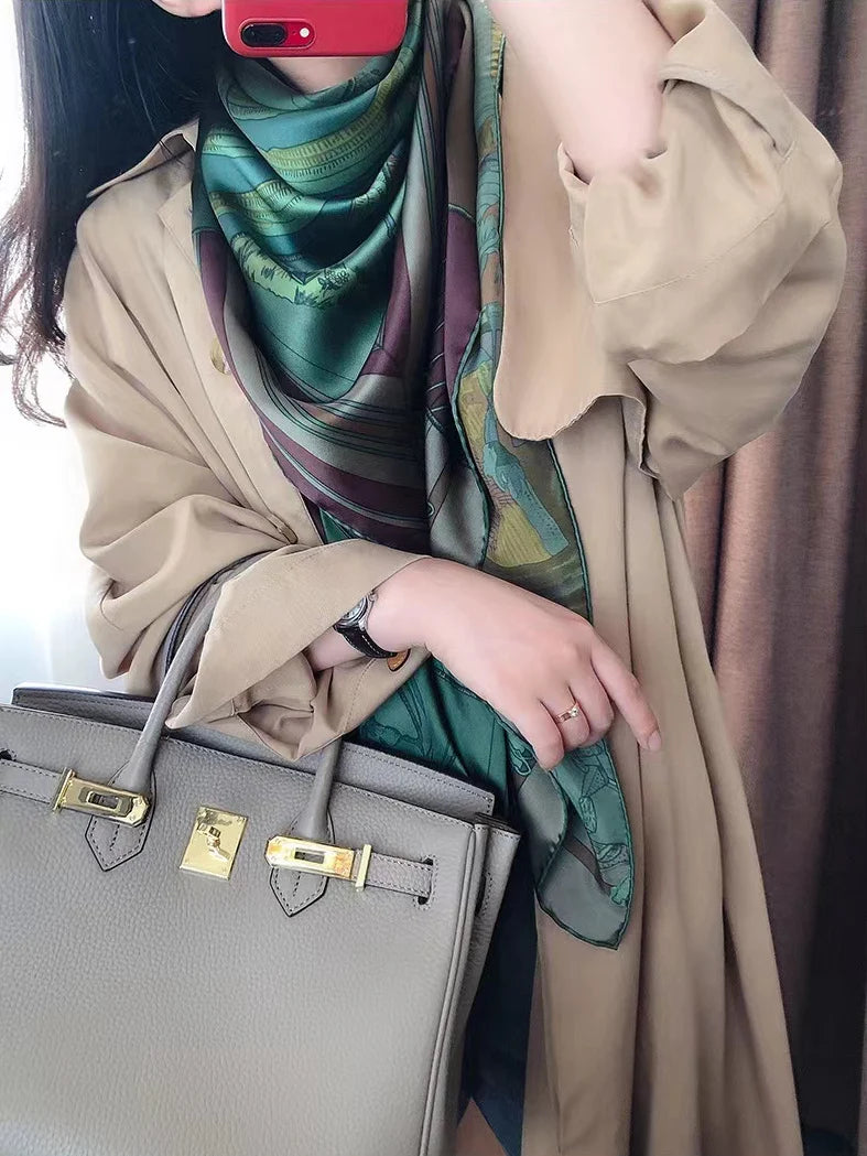 BYSIFA| Marke Grüner Schal aus reiner Seide für Damen, Foulard, Frühling/Herbst, 100 % Maulbeerseide, Schals, Herbst/Winter, lange Schals, Hijabs
