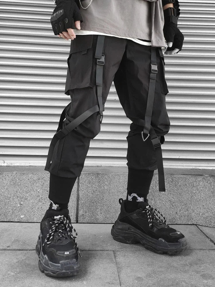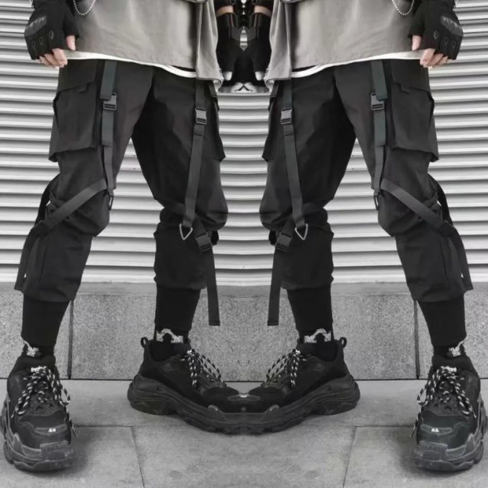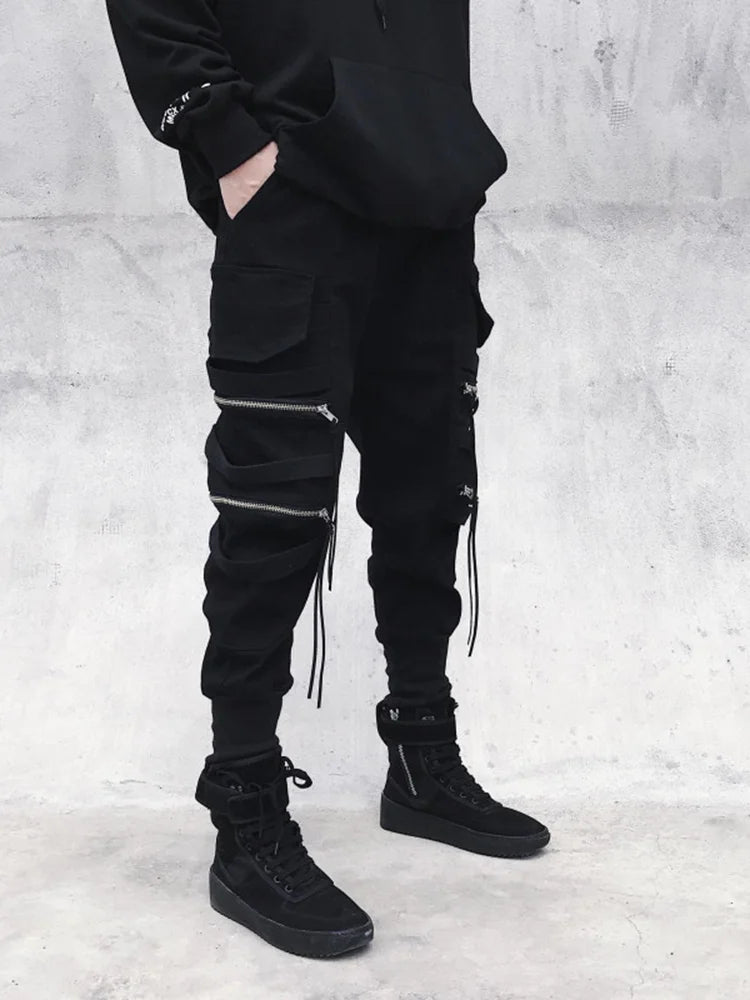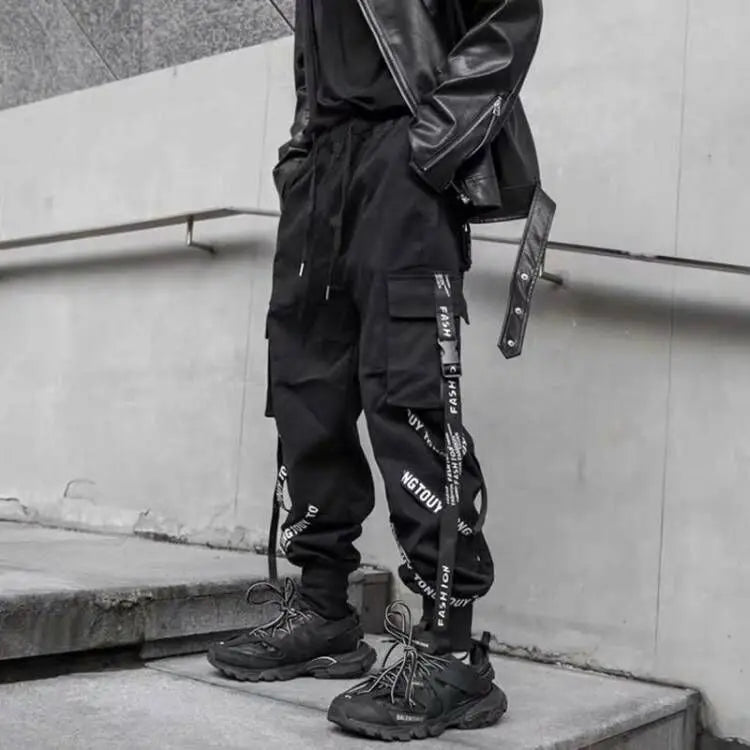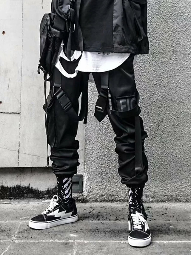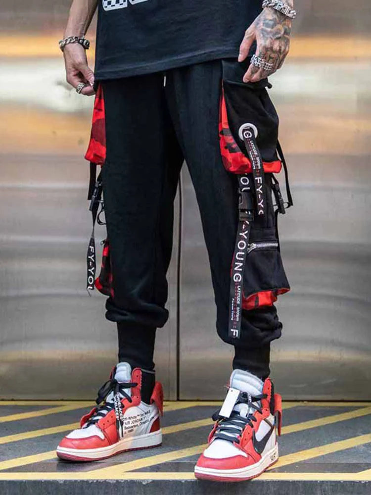 Jogger Cargohose für Herren Casual Hip Hop Hit Color Pocket Herrenhose Sweatpants Streetwear Ribbons Techwear Pants