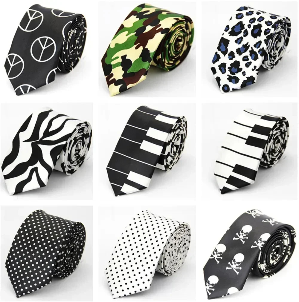 Narrow Ties for Men Women 5cm (2") Skinny Wedding Black Blue Red Pink White Purple Green Gray Piano Skull Slim Necktie