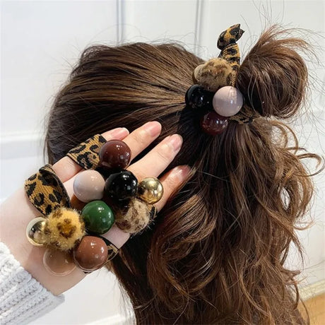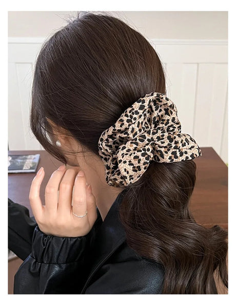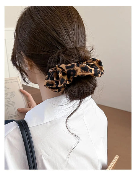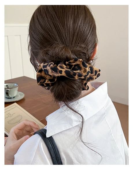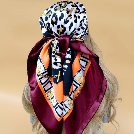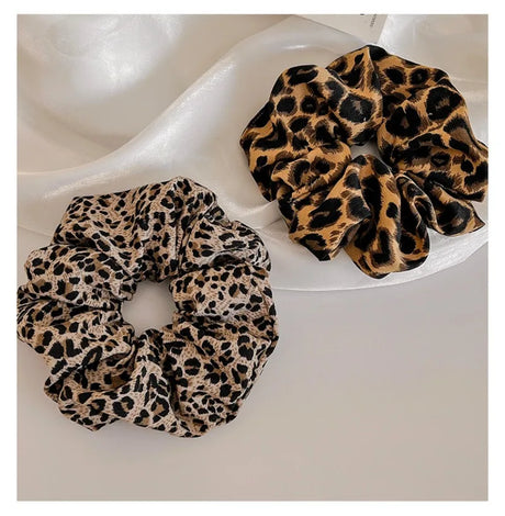 Leopard Print Satin Bonnet Cap Wide Rubber Band Nightcap Hair Care Hat
