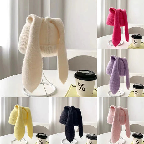 Long Ear Hat Crochet Knitted Hats Cute Bunny Hat Rabbit Ears Hats For Women Winter Warm Cap