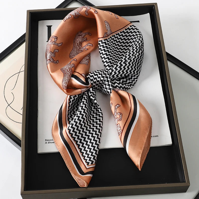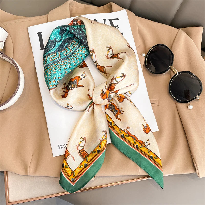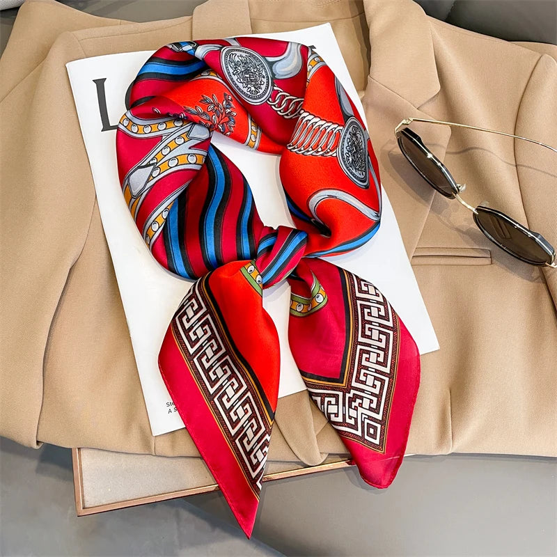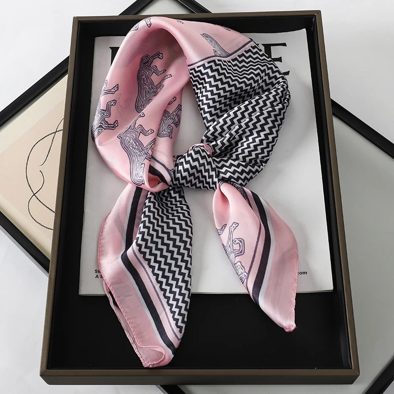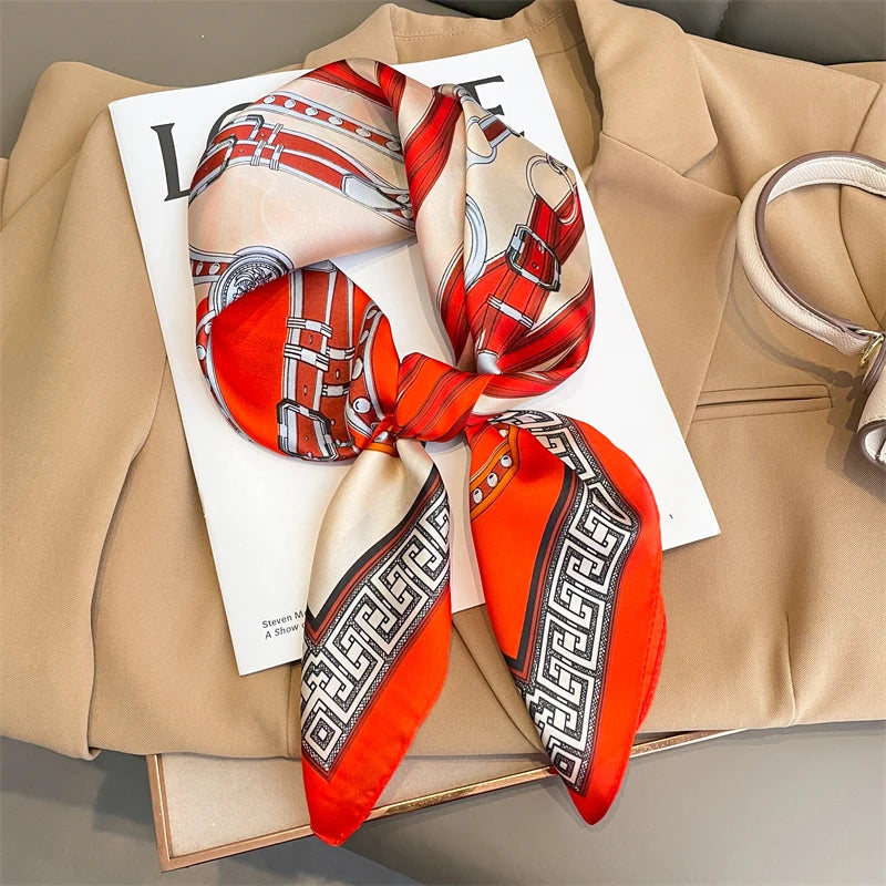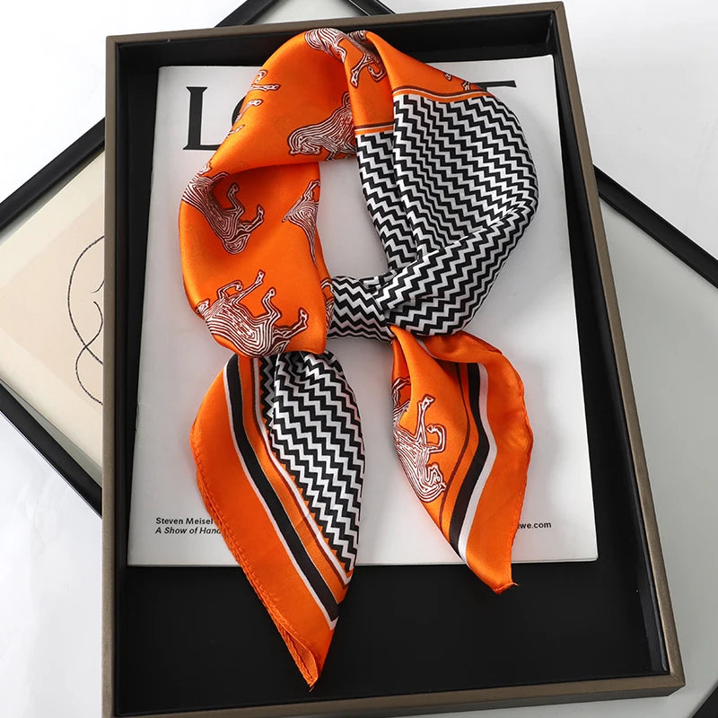 Bufanda cuadrada de seda para mujer, chales de satén, pañuelos casuales, pañuelo para el pelo, hjiab, 70 x 70 cm, nueva marca de lujo de moda 2023
