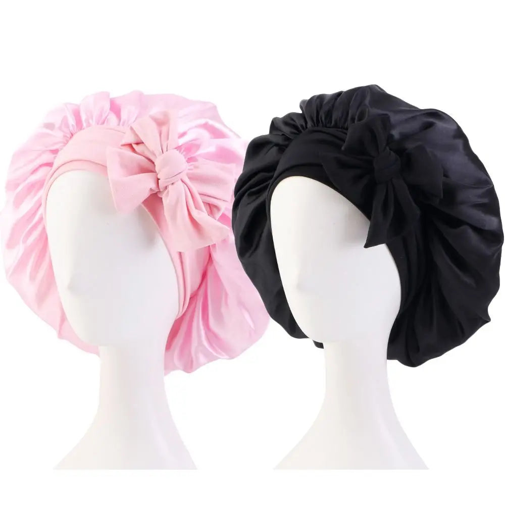 Women Satin Solid Sleeping Cap Soft Silk Nightcap Bonnet With Headband For Women Children Silk Scarf Sleep Hat