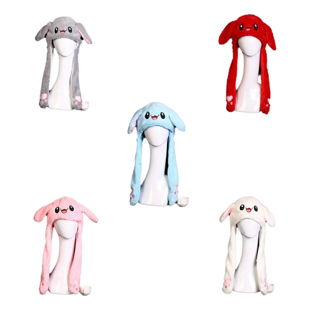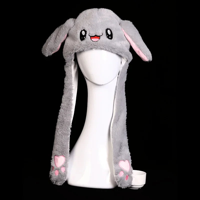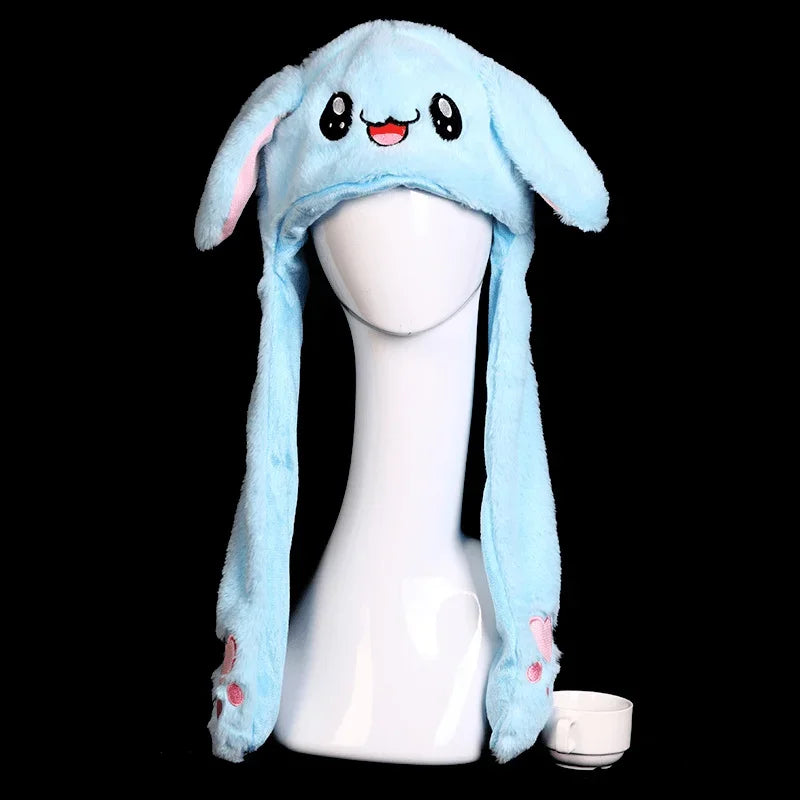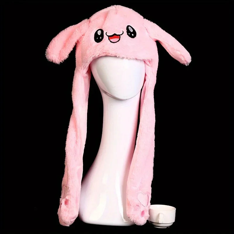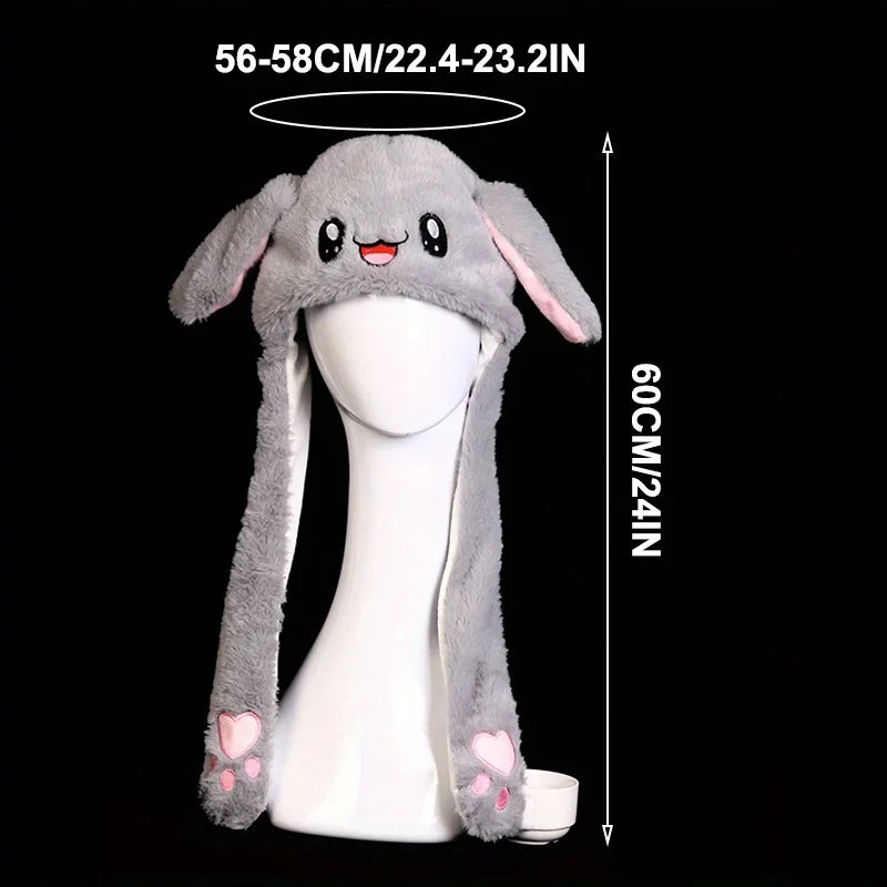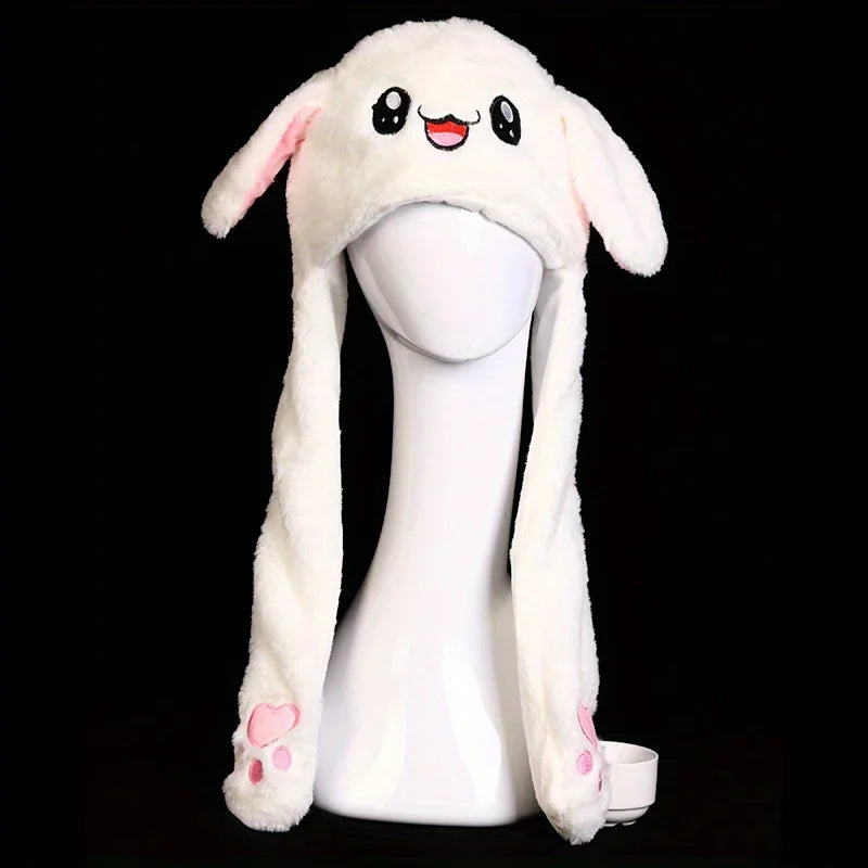 Women's Cute Beanies Hat Animal Rabbit Ears Glowing Moving Short Plush Warm Skullies Cap Autumn Winter Outdoor Travel Casual Hat