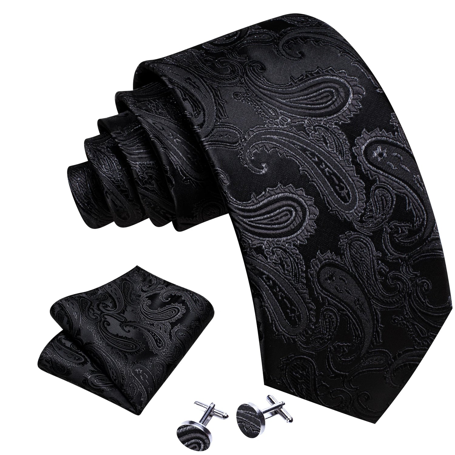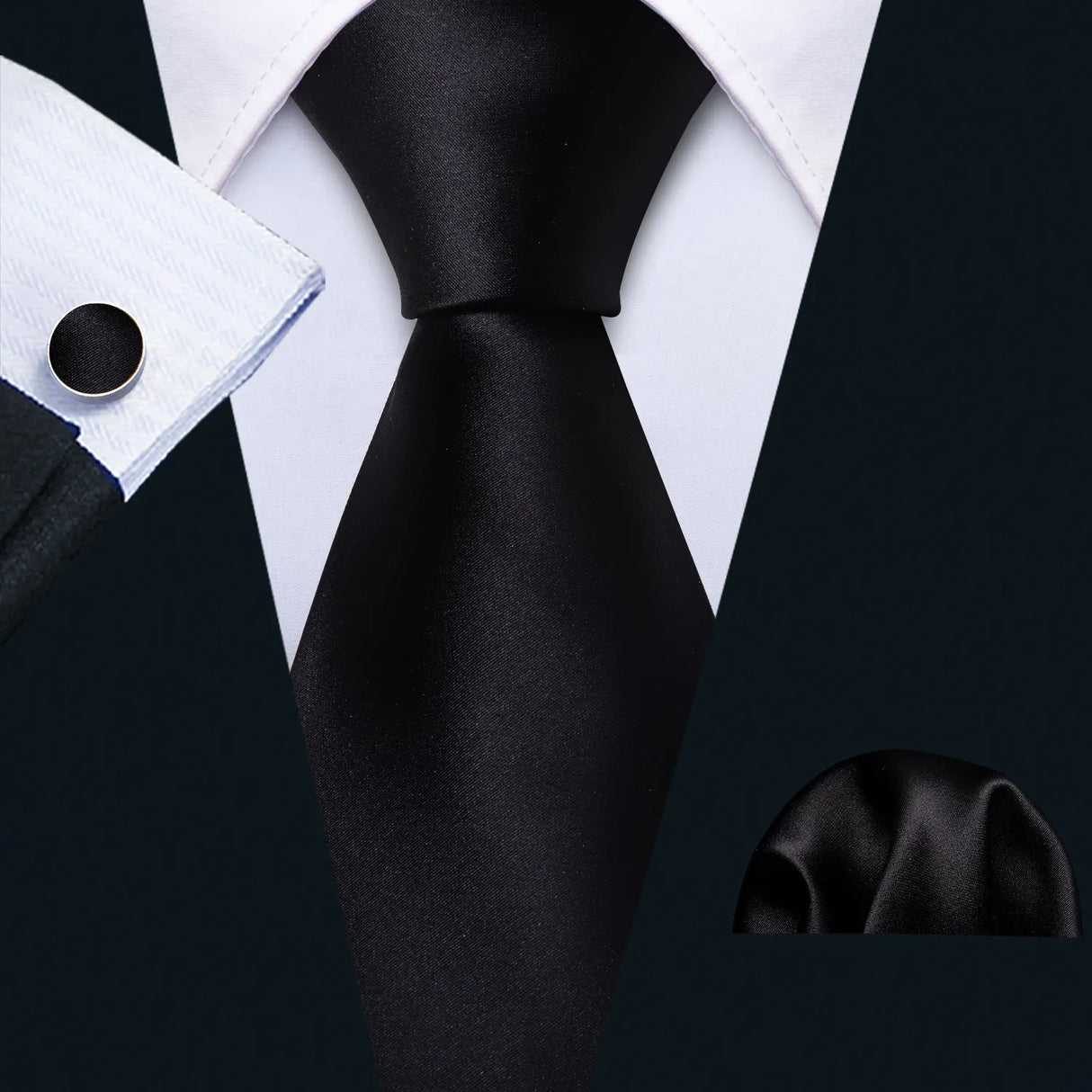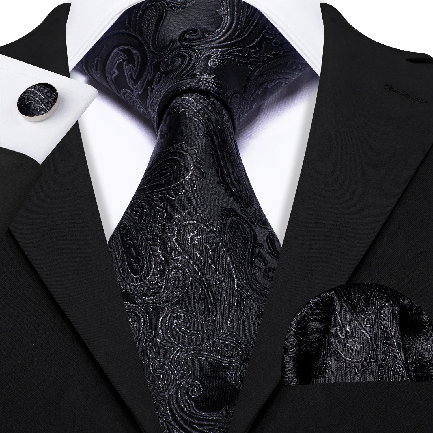 Corbatas de seda negras para hombre, clásicas, lisas, de alta calidad, tejidas, de bolsillo, con gemelos, para fiestas, formales, de diseño Barry.Wang
