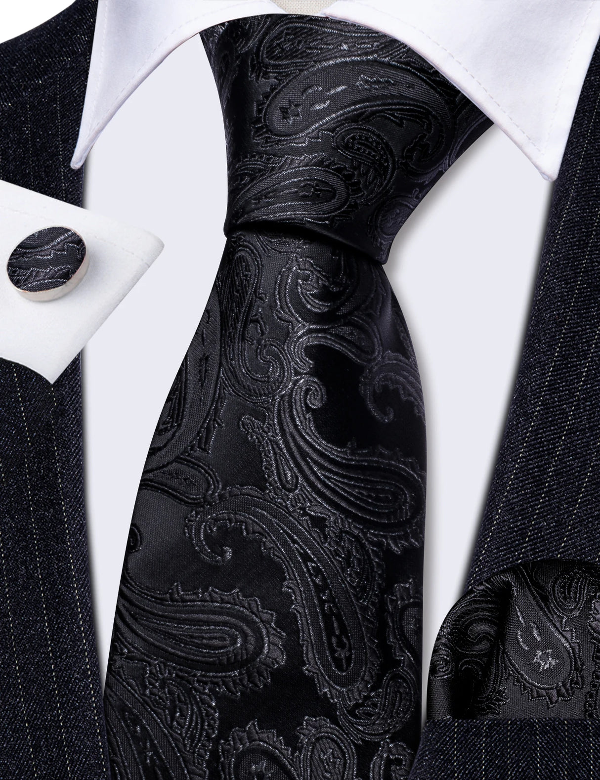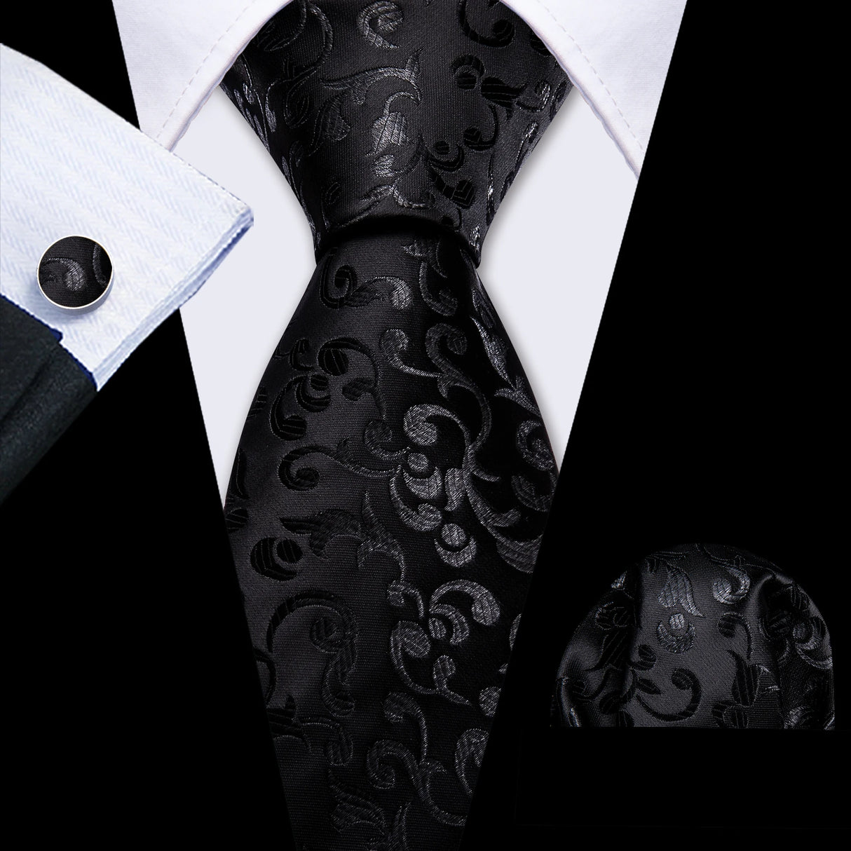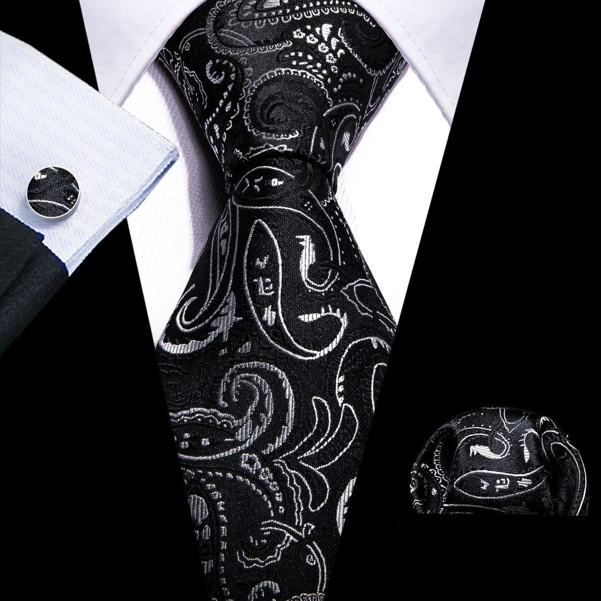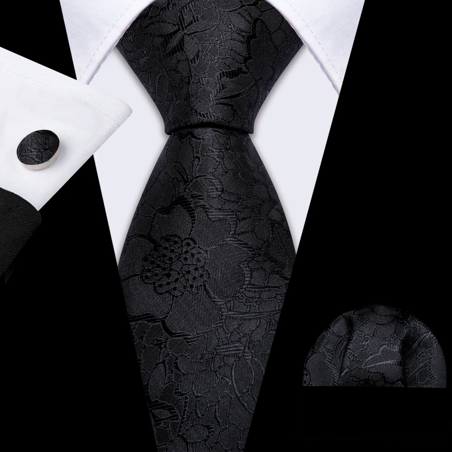 Corbatas de seda negras para hombre, clásicas, lisas, de alta calidad, tejidas, de bolsillo, con gemelos, para fiestas, formales, de diseño Barry.Wang