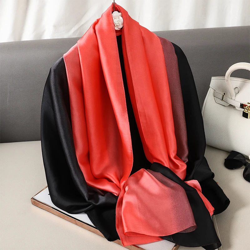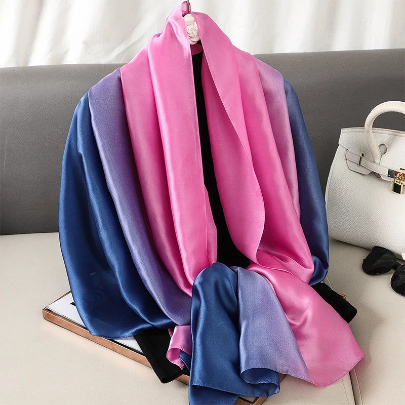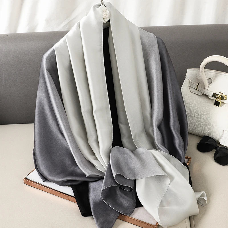 Fashion Lady Solid Soft Satin Silk Scarf Big Shawl Gradient Design Silk Scarves Luxury Brand Women Beach Stole Bandana 90*180CM