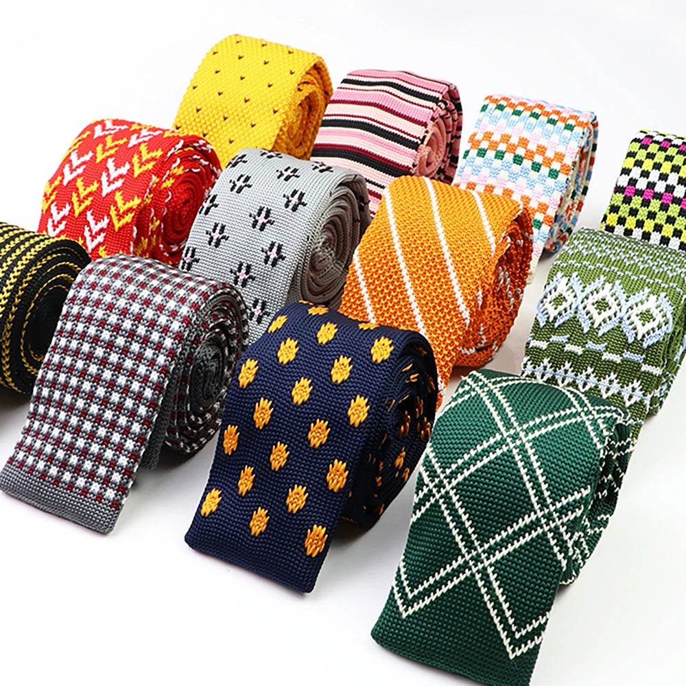 Classic Knit Neck Ties For Men Casual Suits Tie Plaid Dots Leisure Warm Mens Neckties For Business Wedding 6cm Width Men Ties