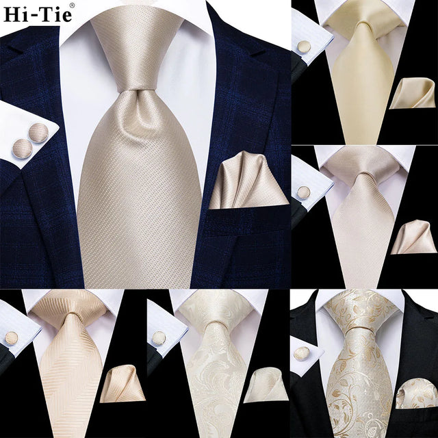 Corbata de boda de seda Hi-Tie en color champán marfil con diseño floral para hombre, pañuelo de calidad, gemelos, corbata de moda, envío directo para negocios.
