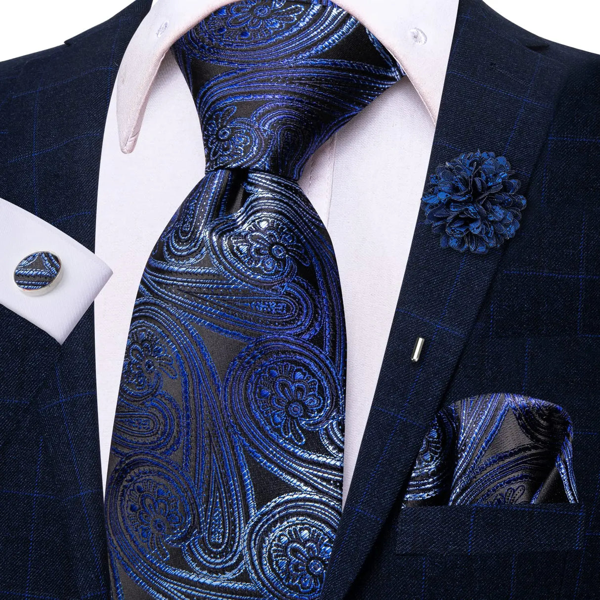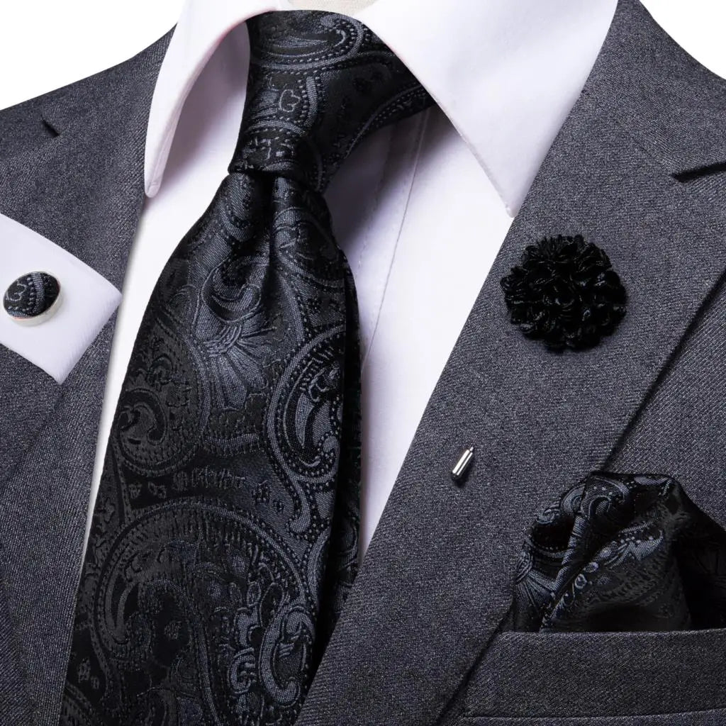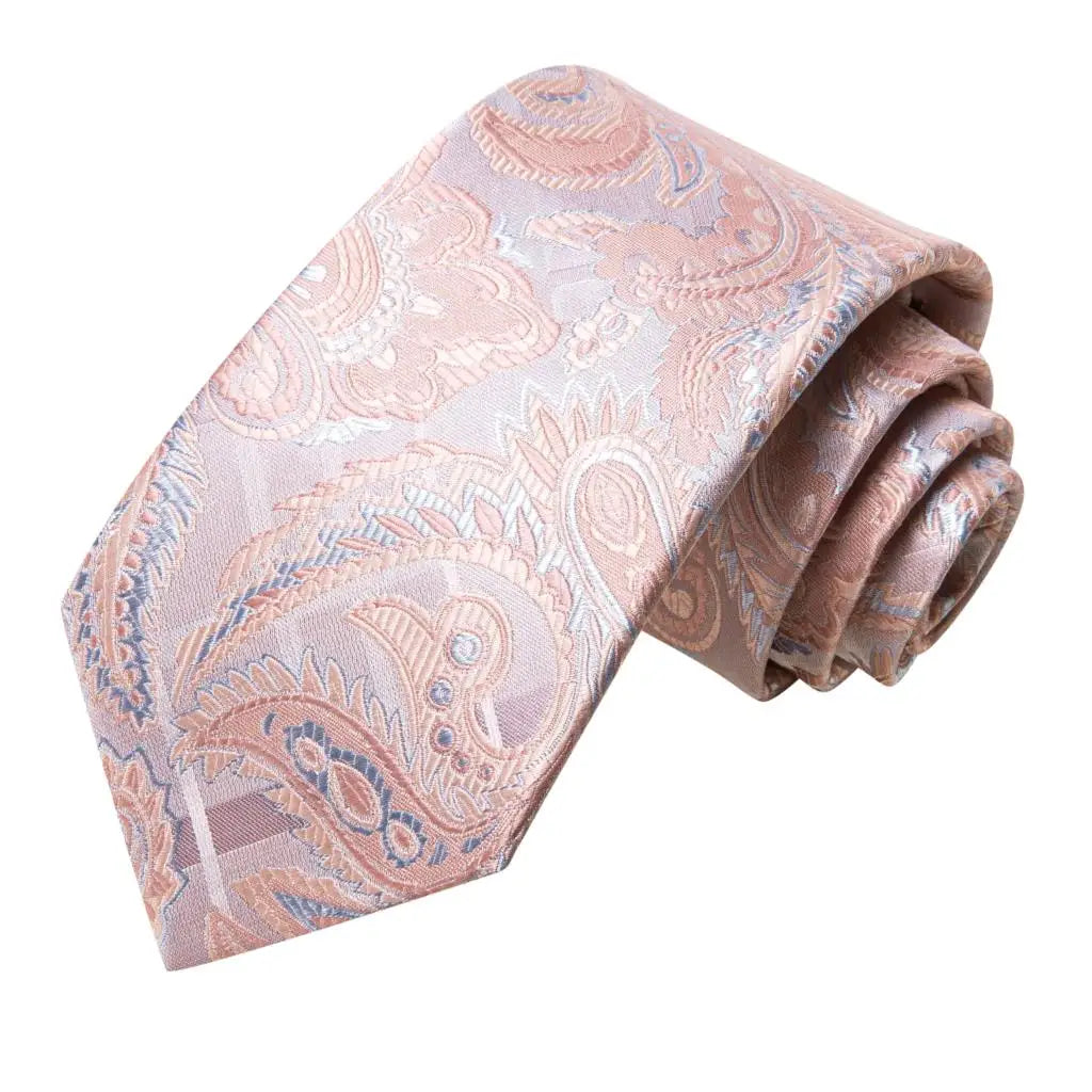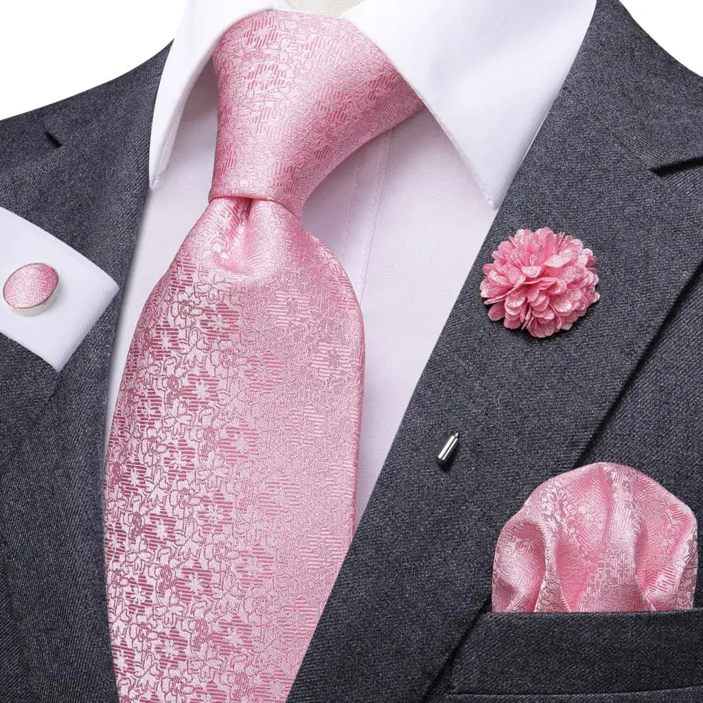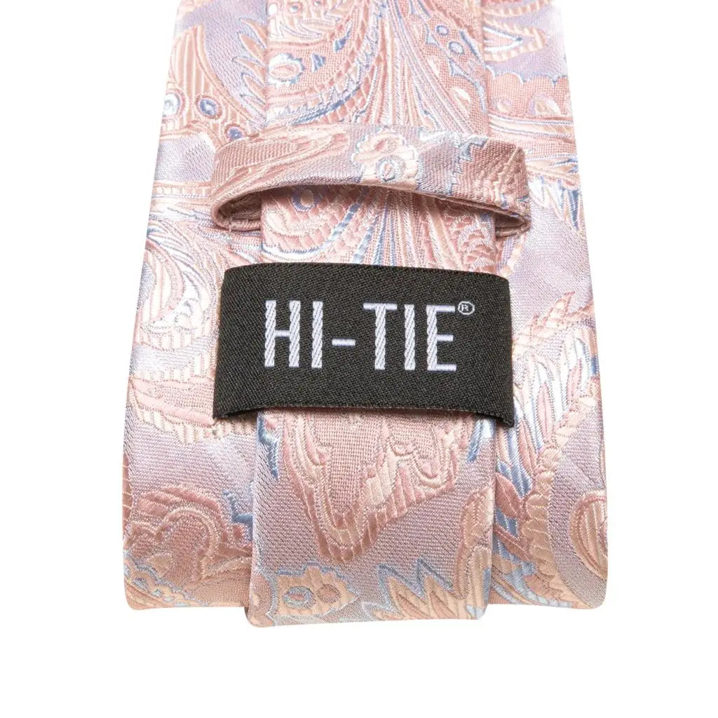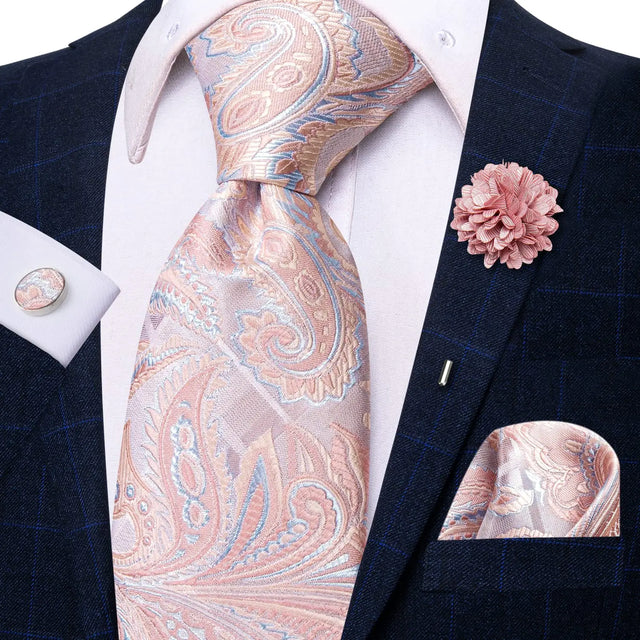 Paisley Pink Necktie With Brooch Silk Elegent Wedding Tie For Men Handky Cufflink Fashion Business Party Hi-Tie Designer