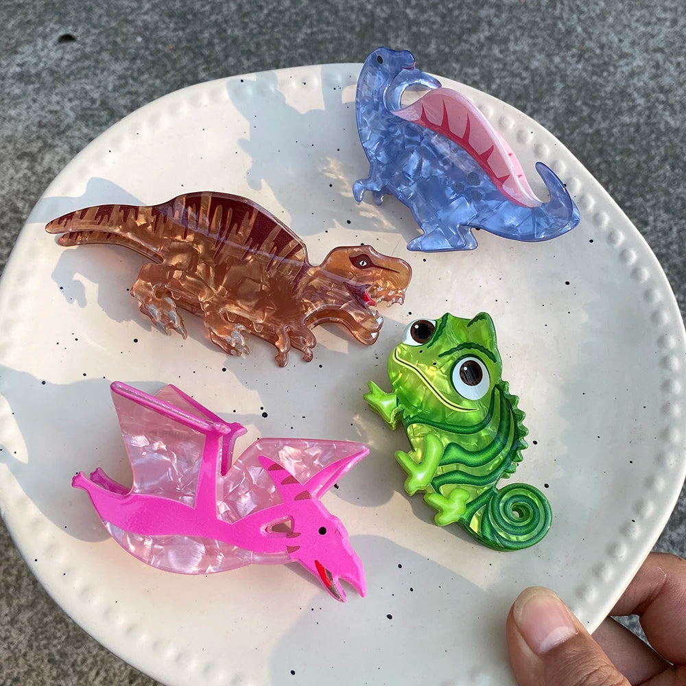 New Design Cartoon Dinosaurs Plastic Hair Clip Claw For Women Girls Fashion Funny Chameleon Ponytail Hairpin Hair Accessories