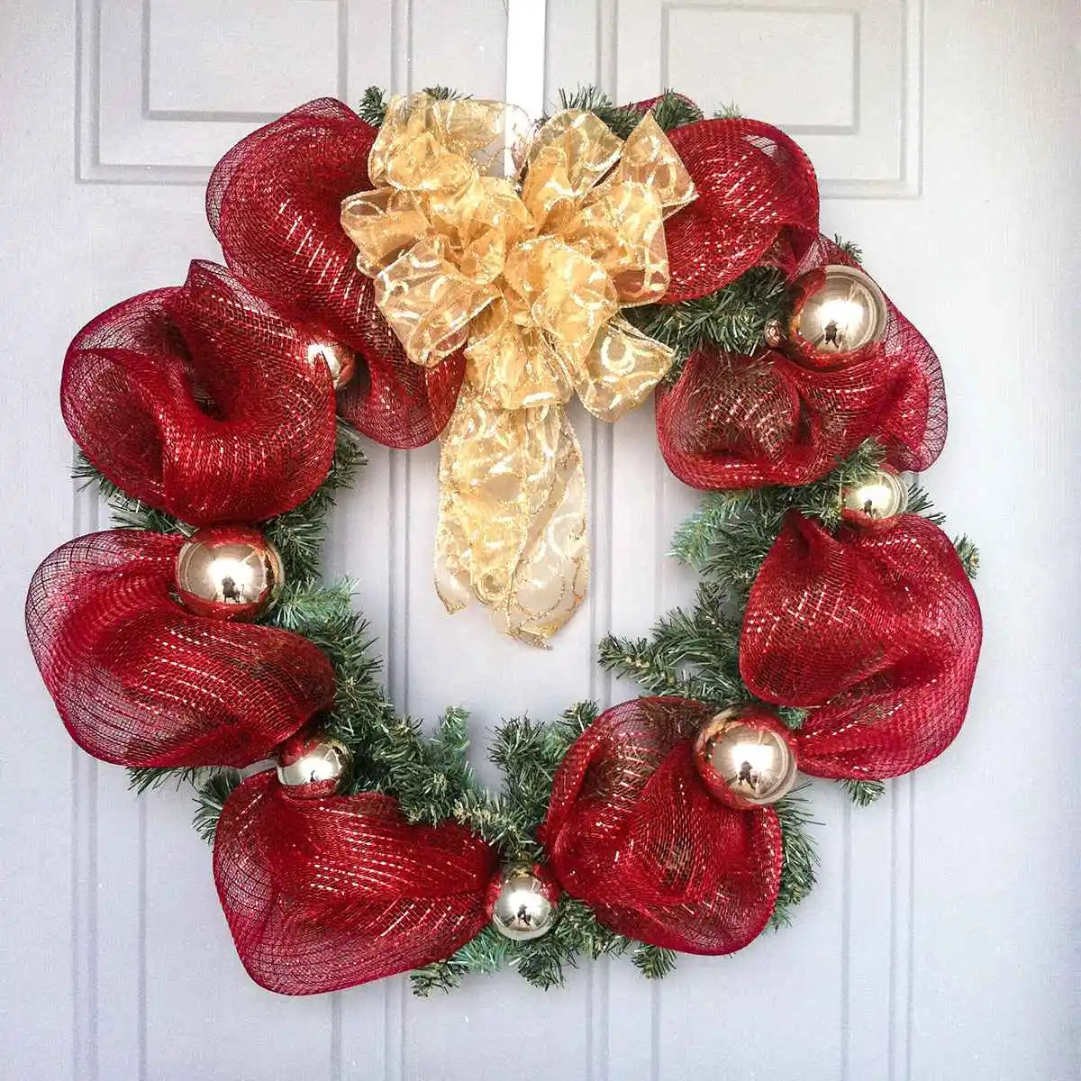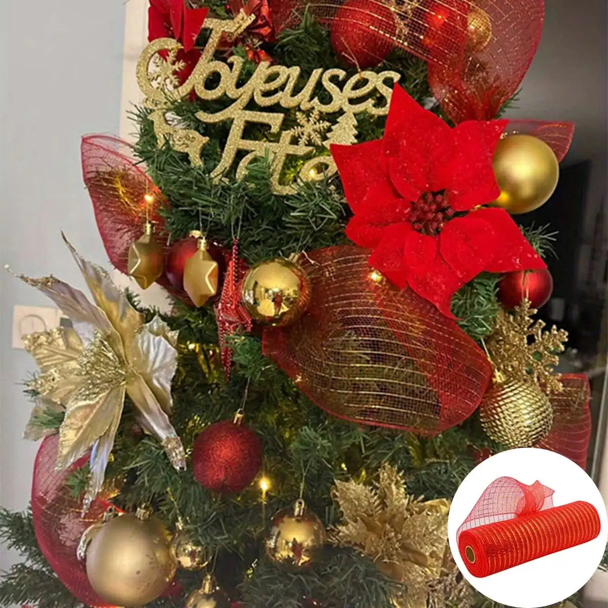 2023 Christmas Crystal Gauze Ribbons Christmas Tree Decorations for Home Door Navidad Noel Kerst Gifts Happy New Year 2024