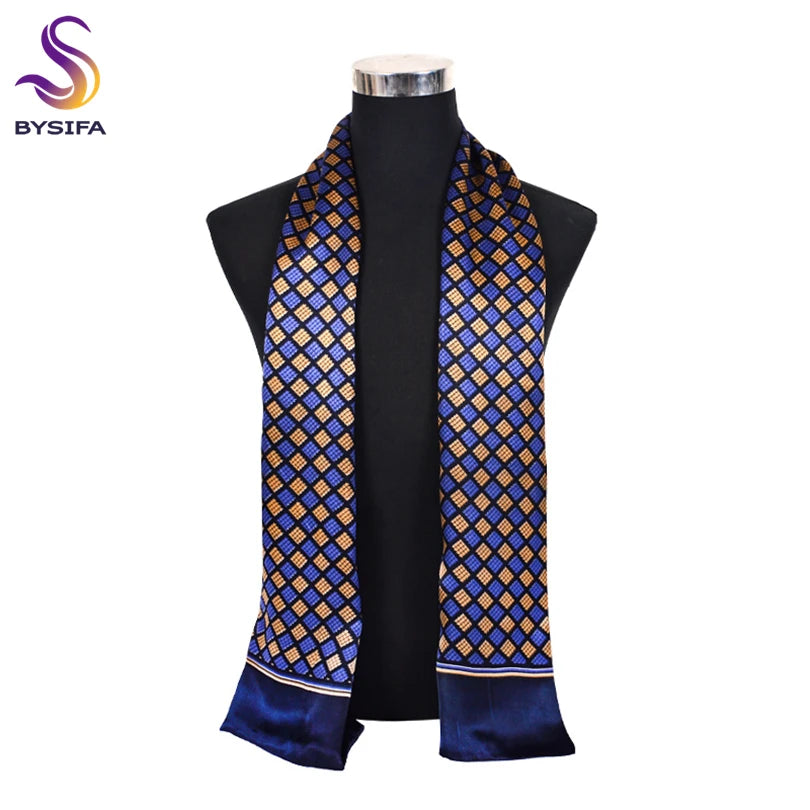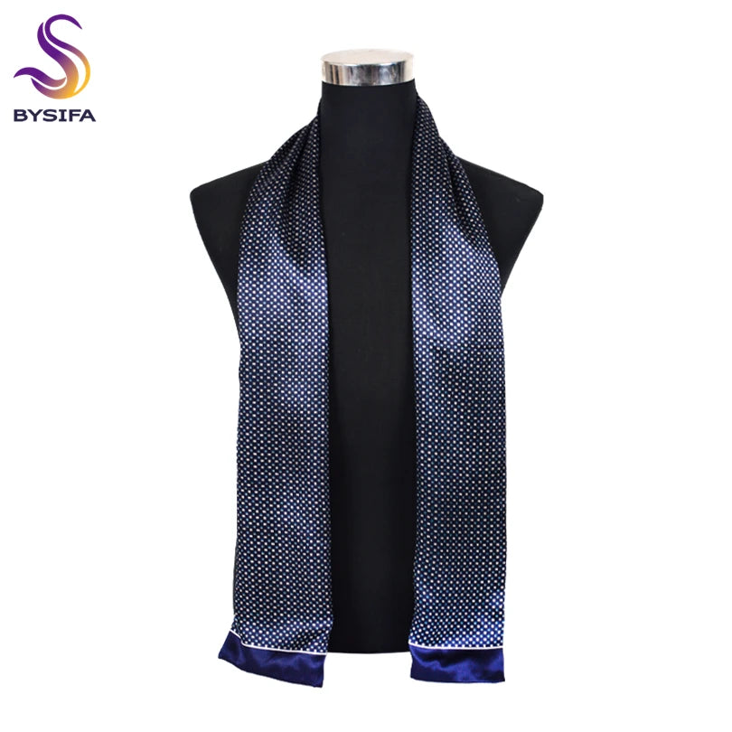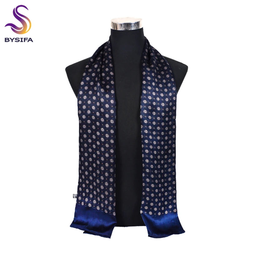 BYSIFA| Bufanda de seda 100% para hombre, color gris plateado, estampada, de marca de moda, larga, para otoño e invierno, 160 x 26 cm - Azul marino está agotado y se enviará tan pronto como vuelva a estar disponible.