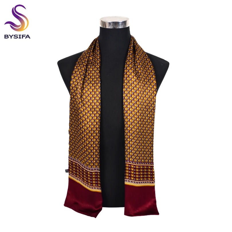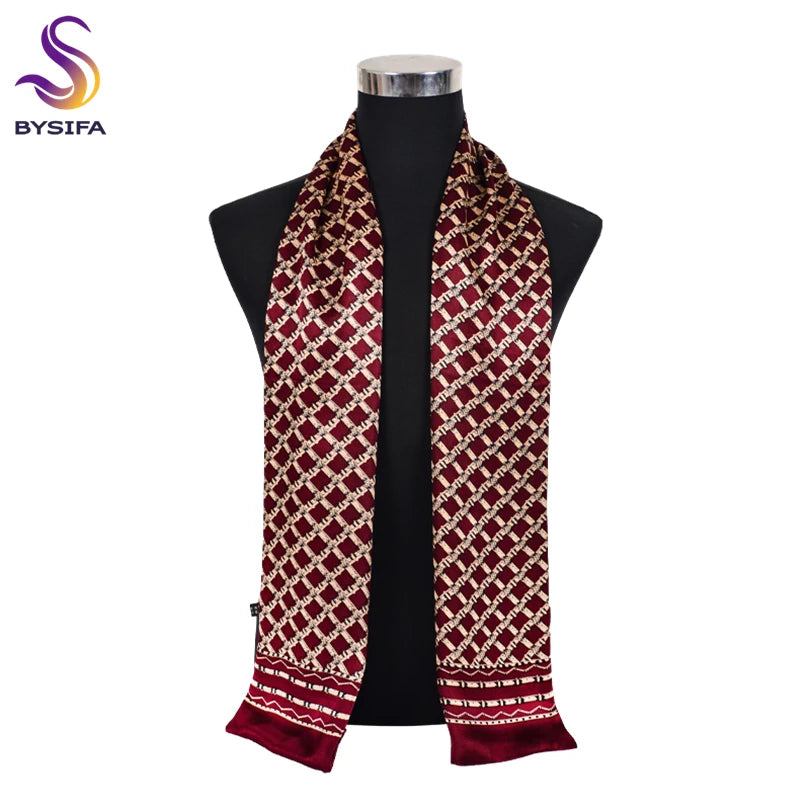 BYSIFA| Bufanda de seda 100% para hombre, color gris plateado, estampada, de marca de moda, larga, para otoño e invierno, 160 x 26 cm