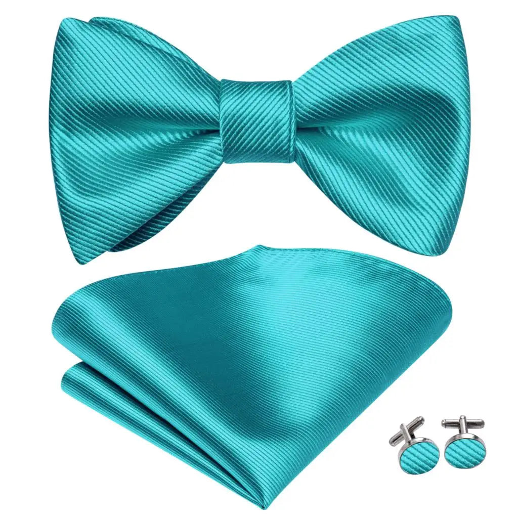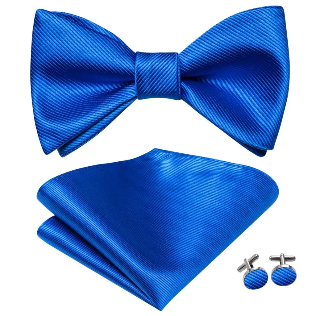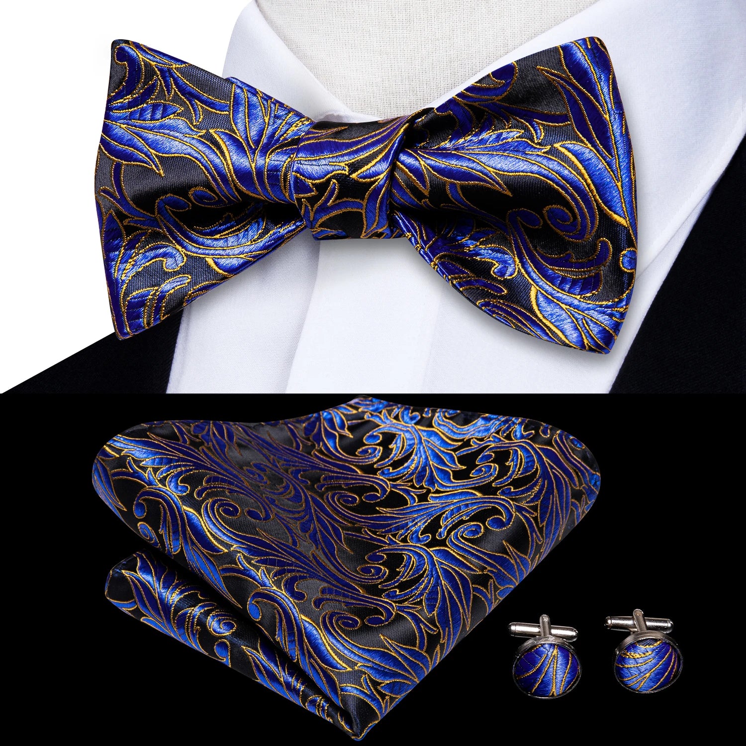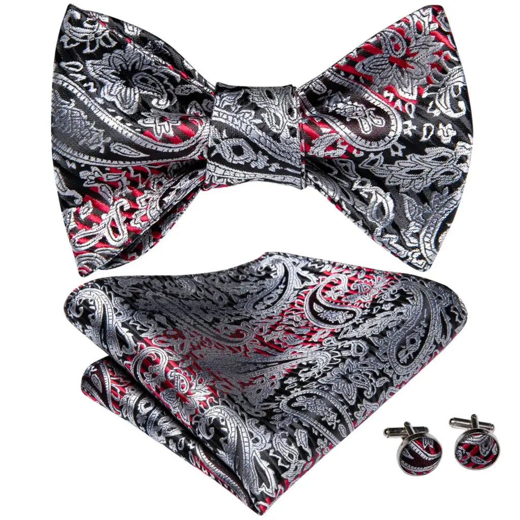 Hi-Tie - Juego de gemelos y pañuelo de seda para hombre, diseño de lazo, en azul, rojo, dorado, negro y blanco, con nudo de mariposa en jacquard para boda y negocios