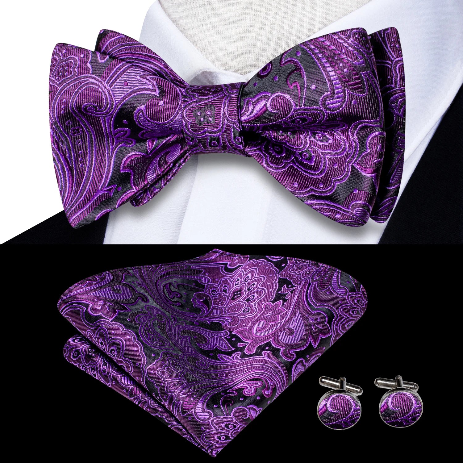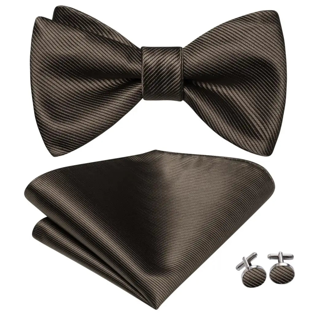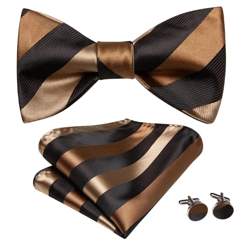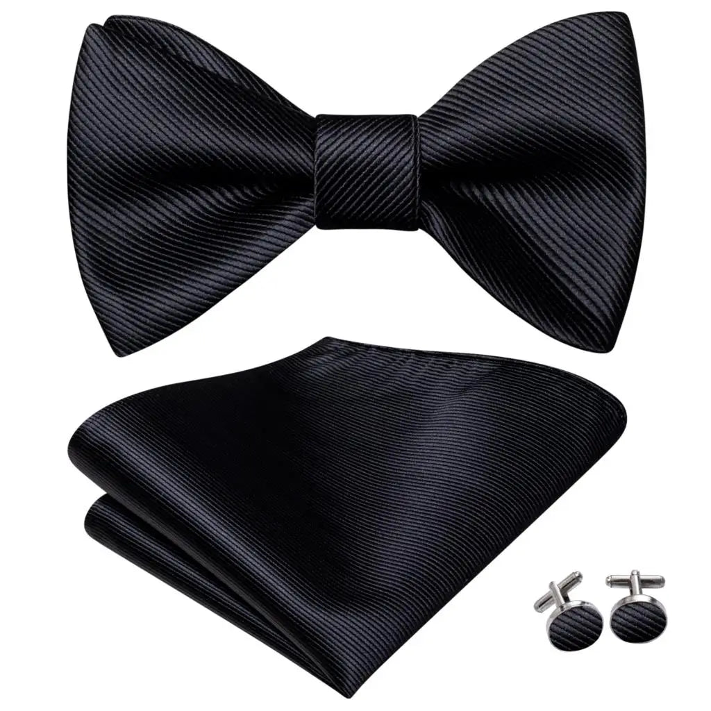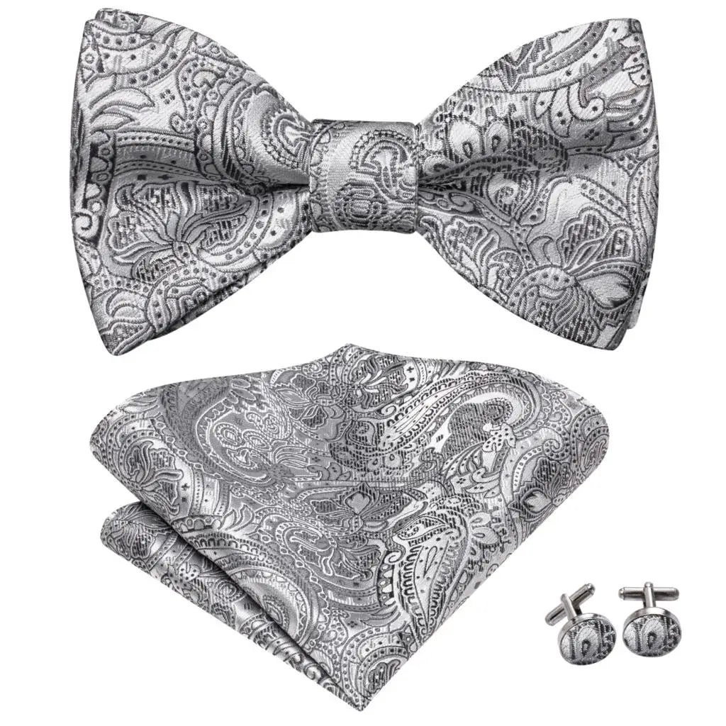 Hi-Tie - Juego de gemelos y pañuelo de seda para hombre, diseño de lazo, en azul, rojo, dorado, negro y blanco, con nudo de mariposa en jacquard para boda y negocios - LH-2054 está agotado y se enviará tan pronto como vuelva a estar disponible.