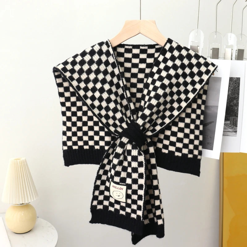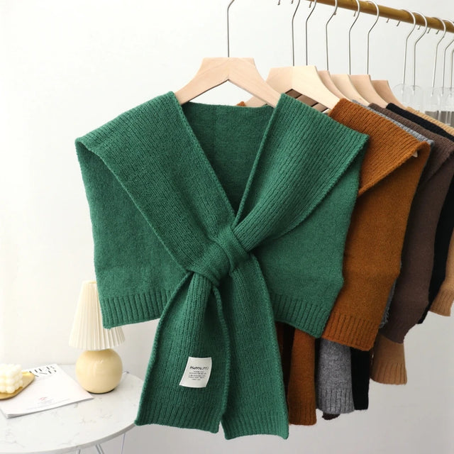 Chal de punto cálido de color puro coreano para invierno, blusa femenina con hombros descubiertos y cuello falso, bufanda anudada, protector de cuello para mujer
