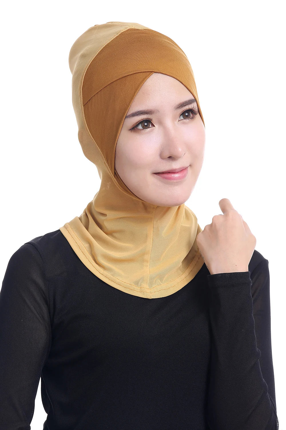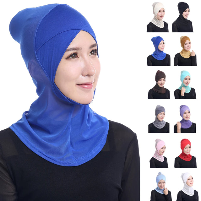 Niqab Hijab Muslim Women Solid Color Stretch Head Scarf Wrap Turban Islamic Underscarf Bonnet Overhead Headwear Inner Cap Ninja
