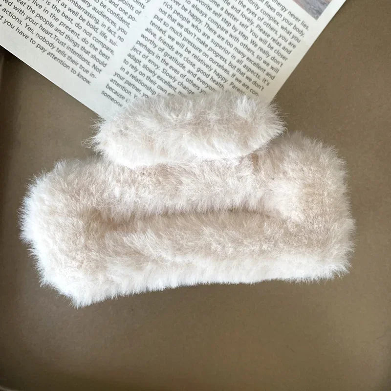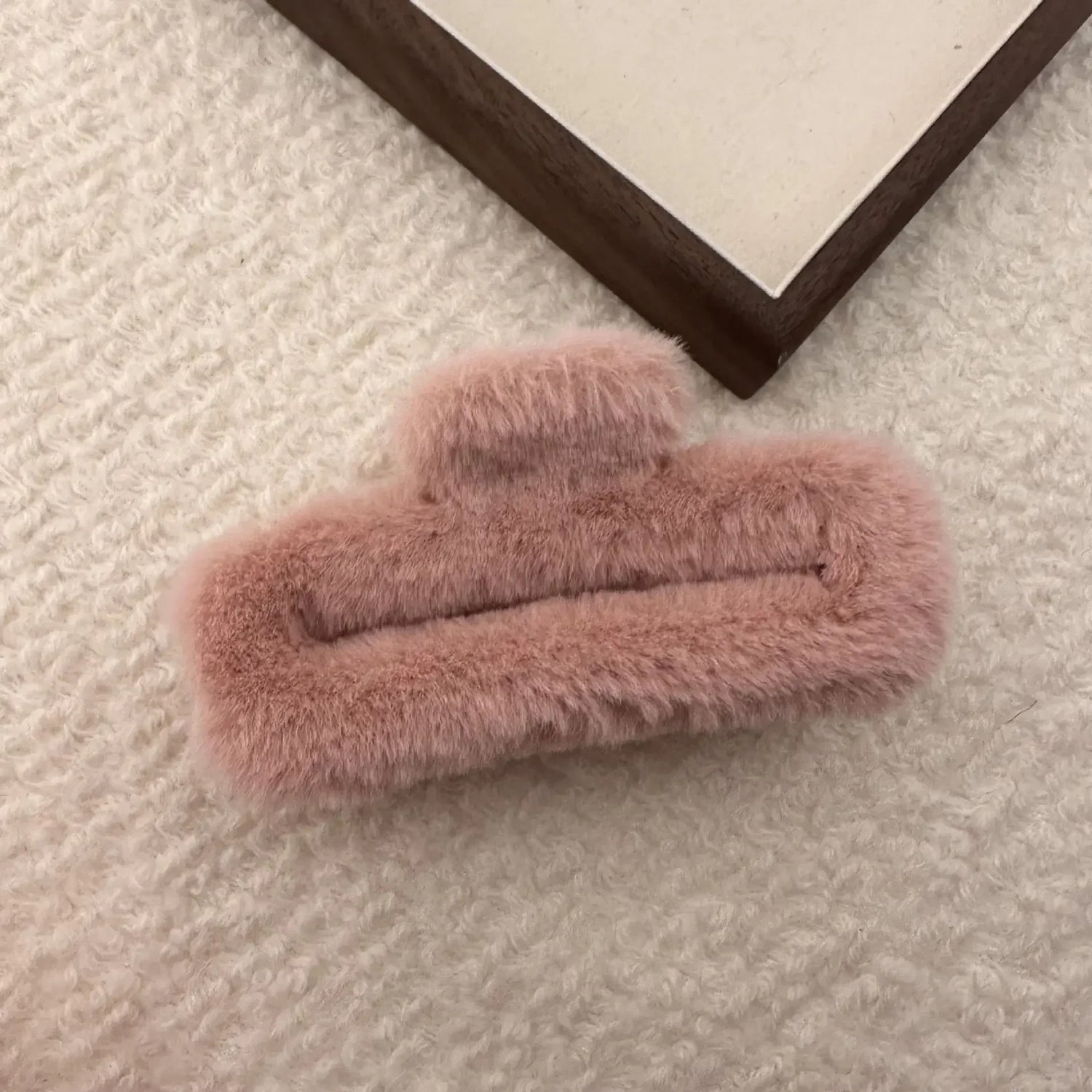 Winter Plush Square Hair Claw for Women Korean Elegant Acrylic Hairpins Faux Fur Hair Clip Pink Barrette Crab Hair Accessories