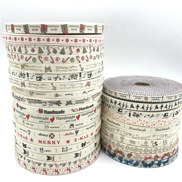 Ruban de coton imprimé fait main, 5 mètres/lot, 15 mm, pour décoration de mariage, de Noël, de bricolage, de couture