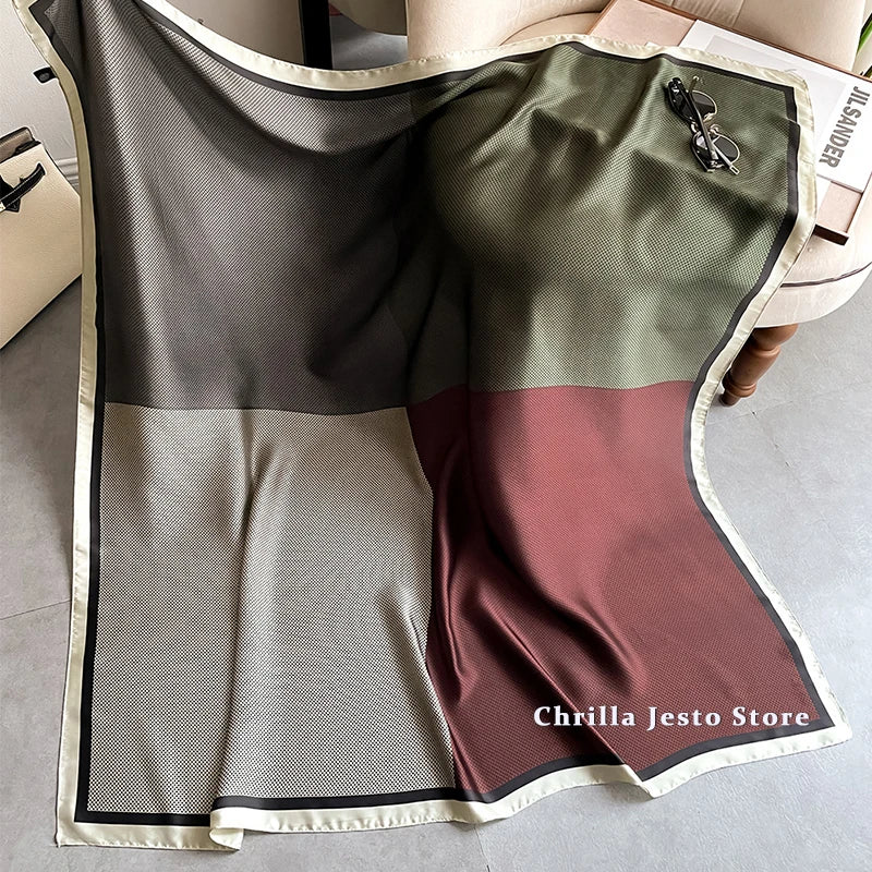 Châle de voyage carré en soie imitation patchwork imprimé couleur pour femme, 110 cm, doux, hijab musulman