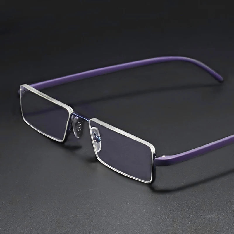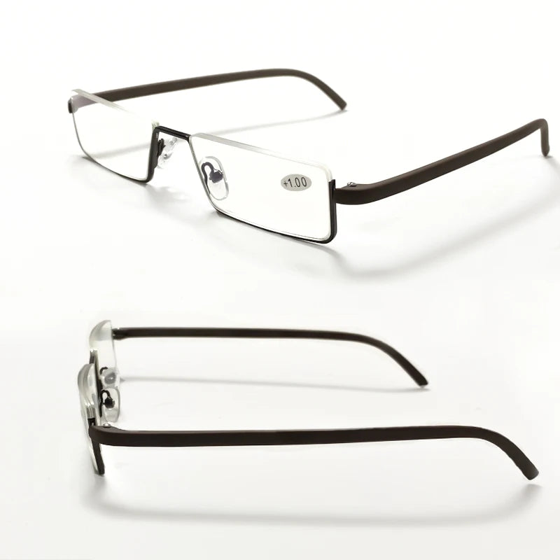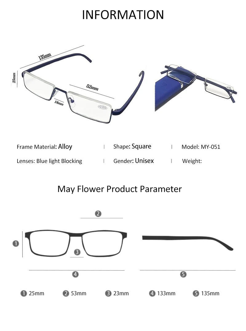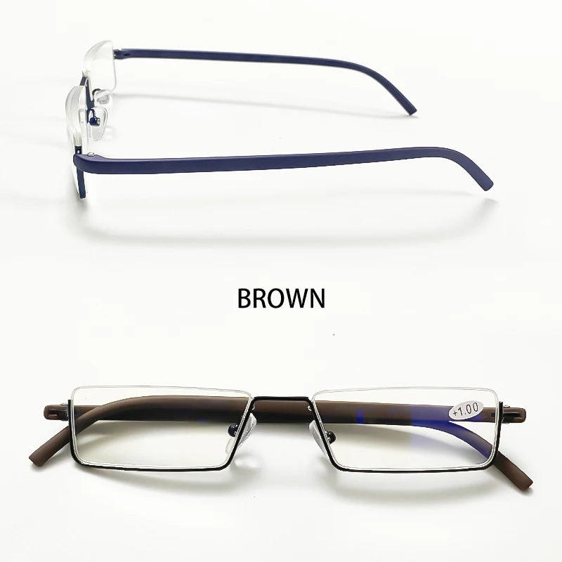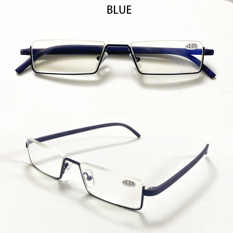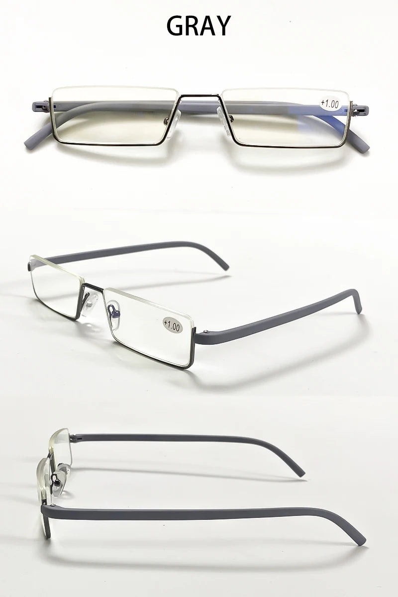 Men Women Metal Blue Light Blocking Reading Glasses with Case TR90 Half Frame HD Prescription Eyewear Presbyopia Diopter