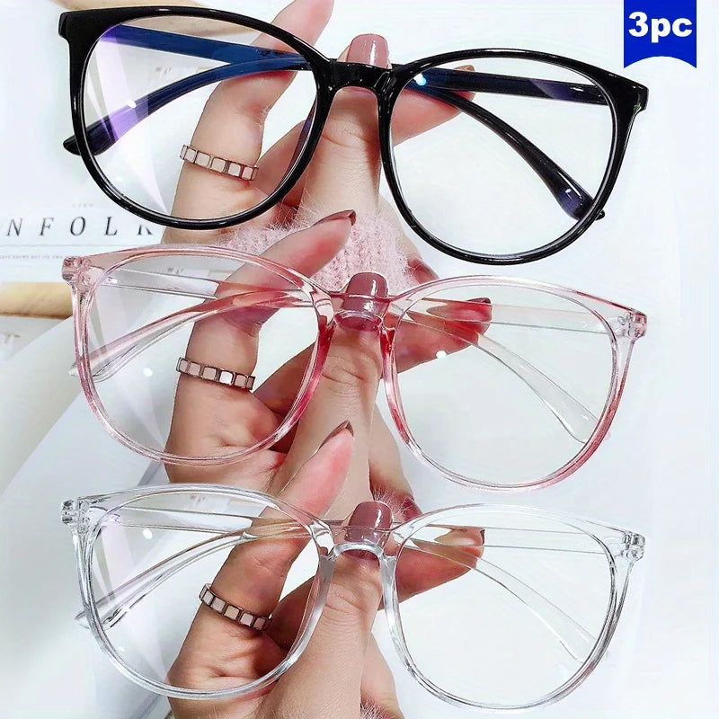 2/3PCS Blue Light Blocking Glasses - Fashion Oversized Frame Glasses Round Eyeglasses, Computer Gaming Glasses for Women/Men