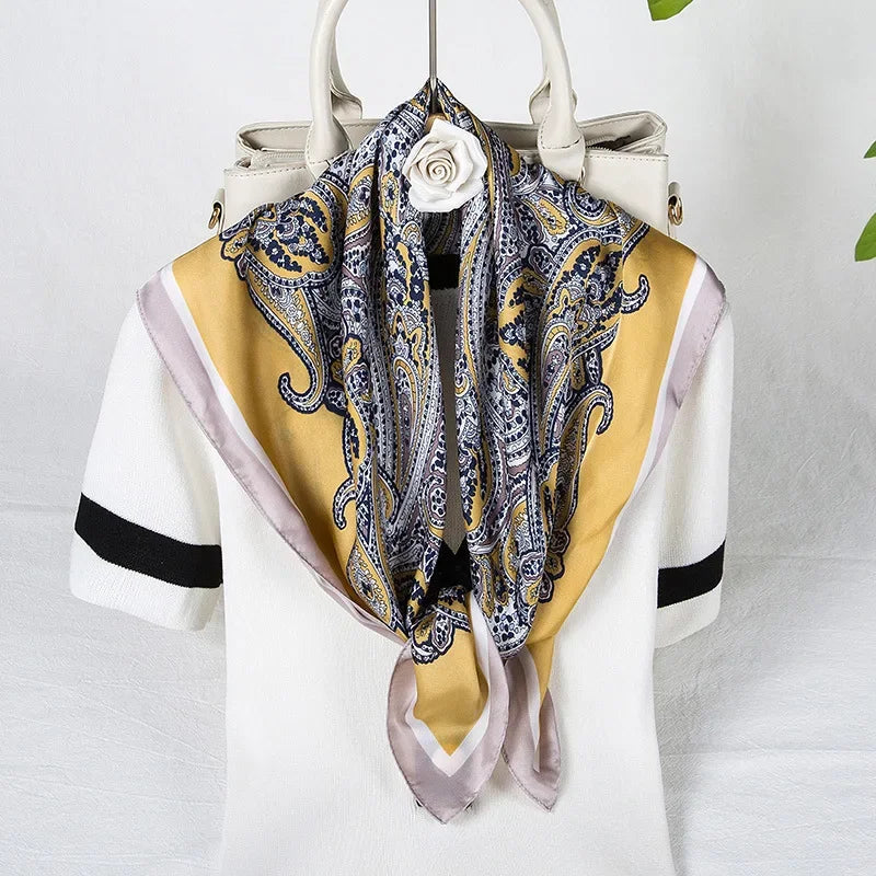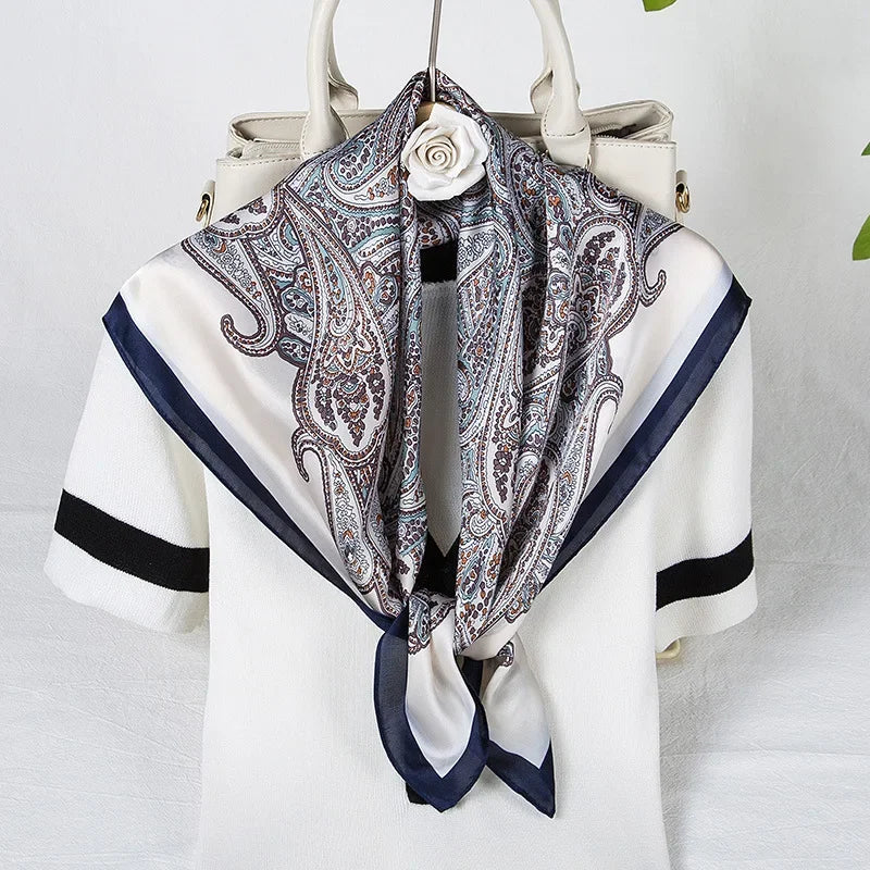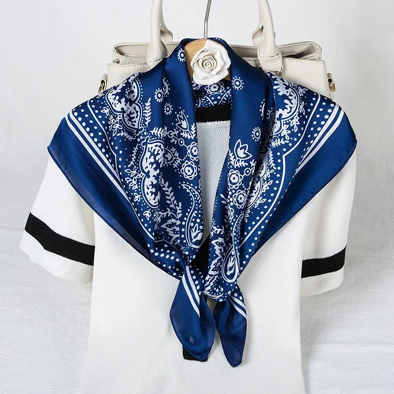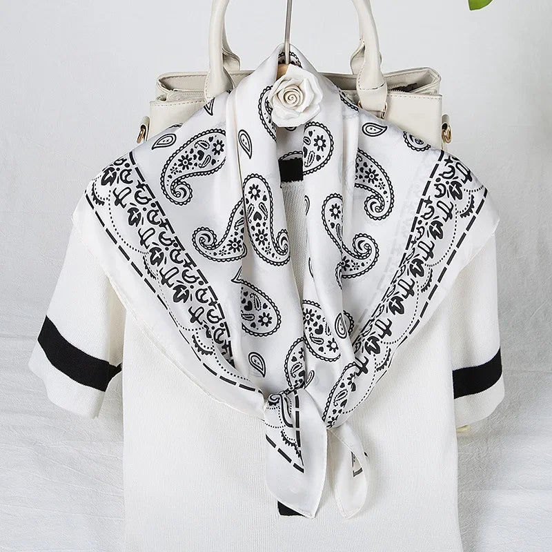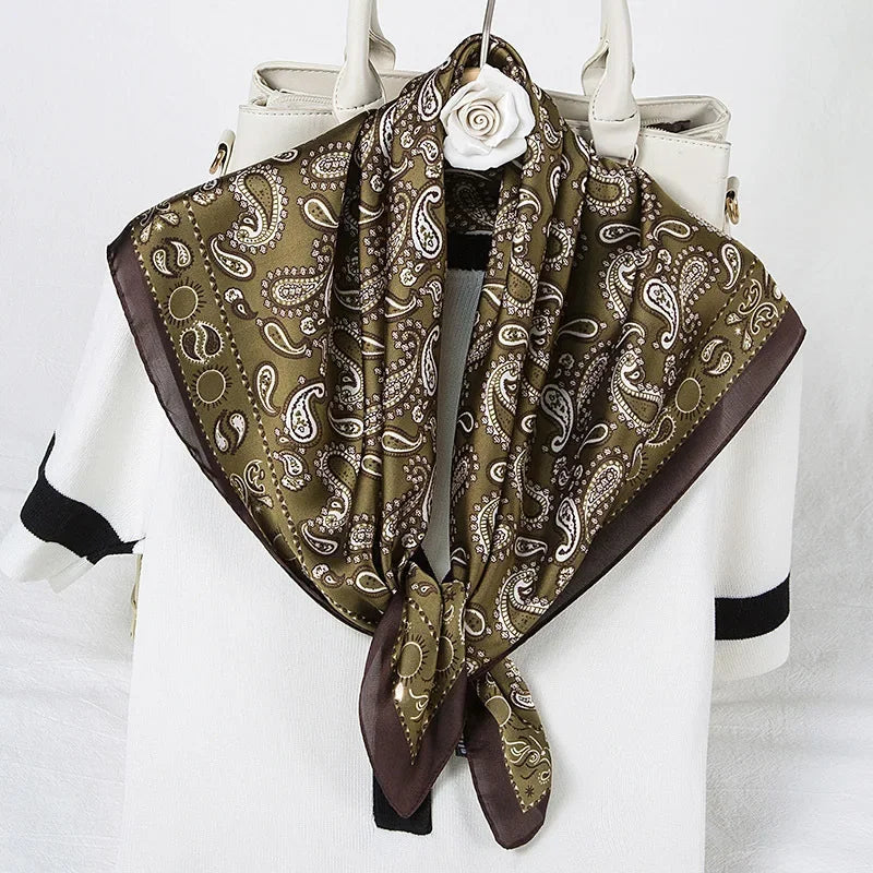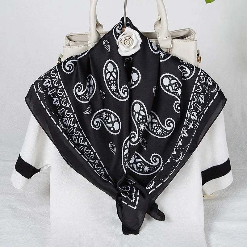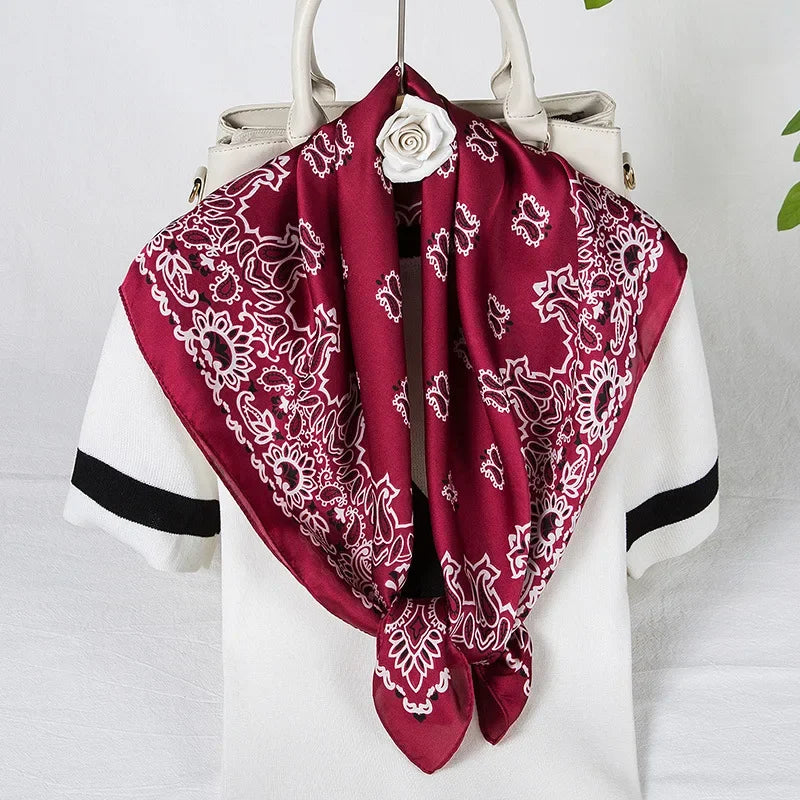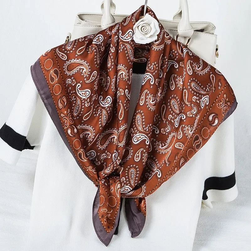 Foulard carré en soie imprimé cachemire pour femme, 70 x 70 cm, idéal pour les cheveux
