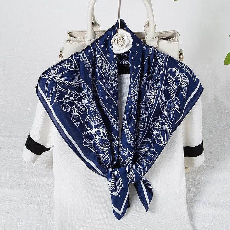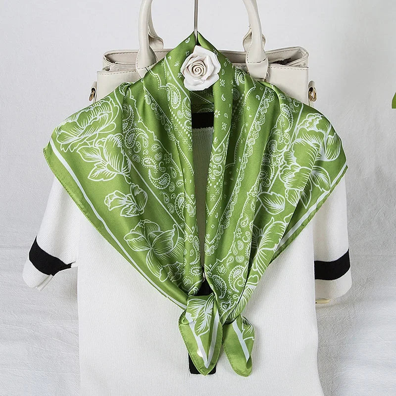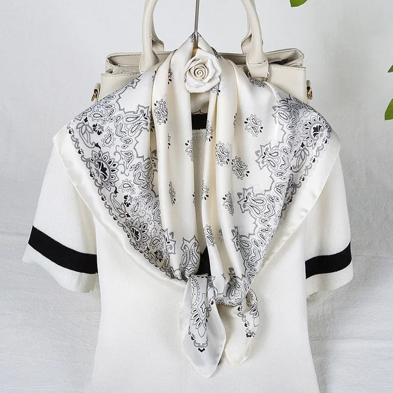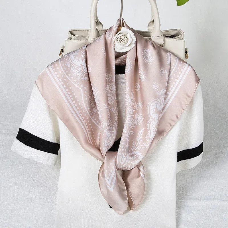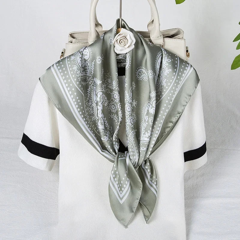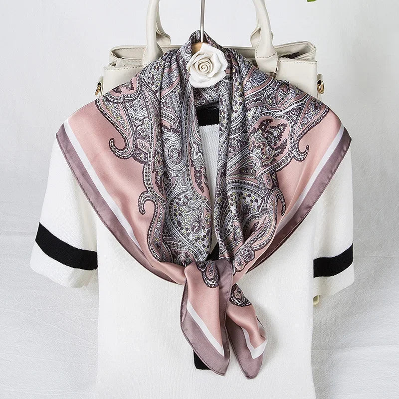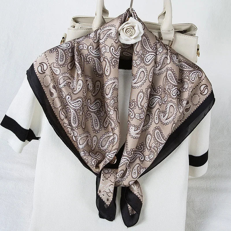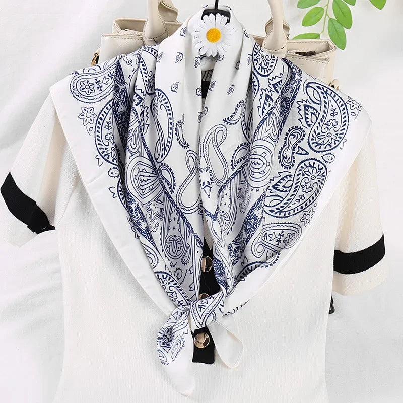 Foulard carré en soie imprimé cachemire pour femme, 70 x 70 cm, idéal pour les cheveux
