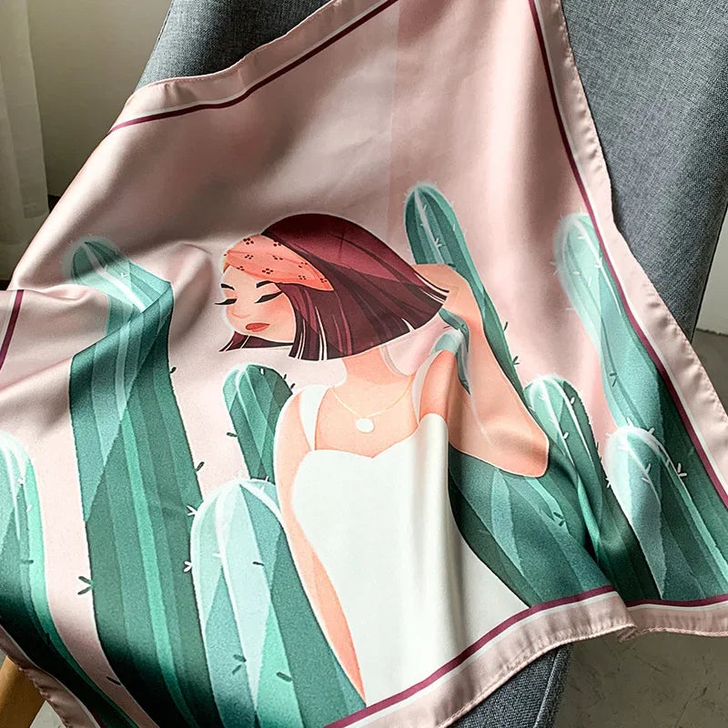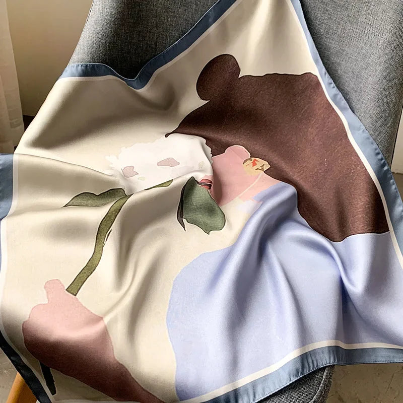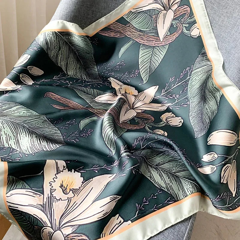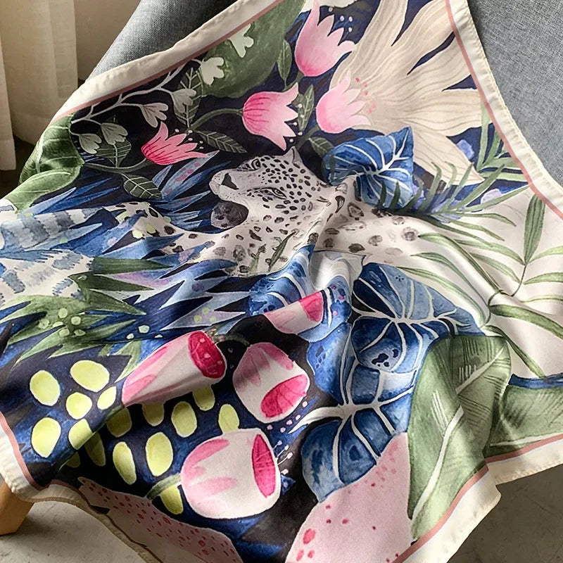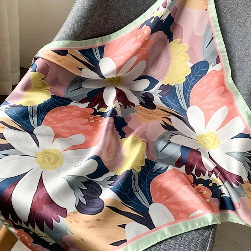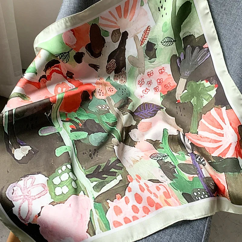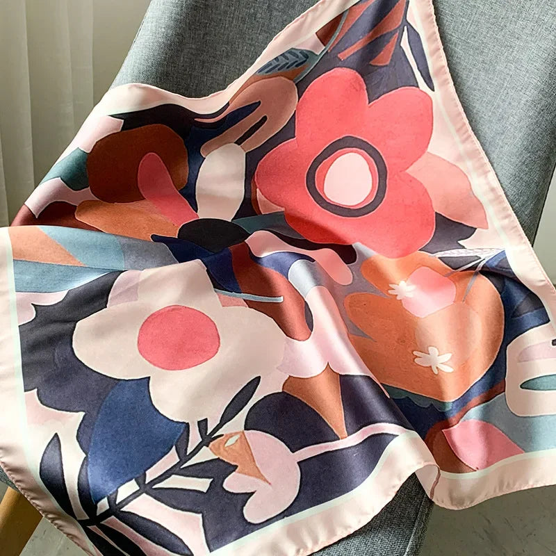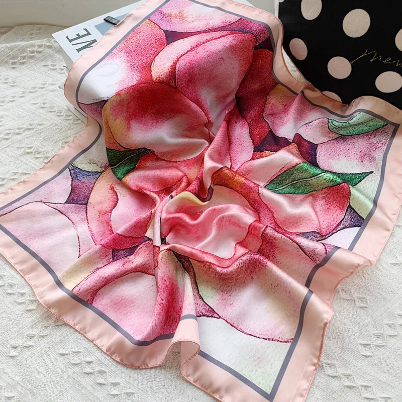 Petit foulard en satin de soie pour femmes, imprimé tendance, 53 x 53 cm, carré, pour le cou, pour le printemps
