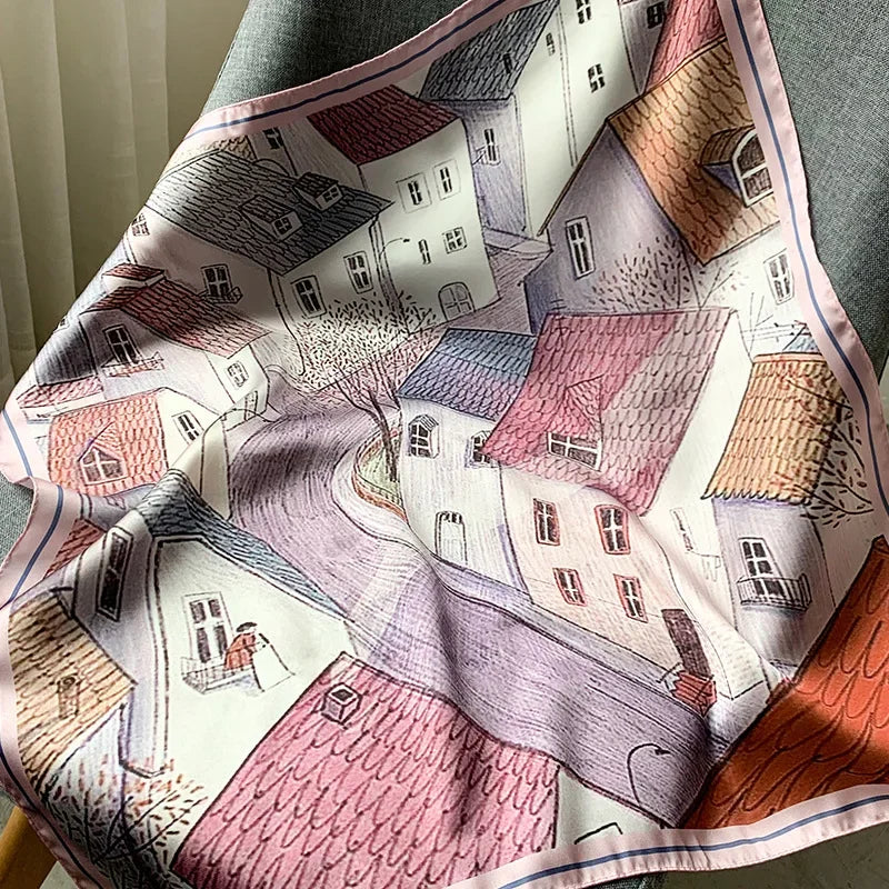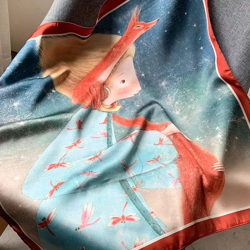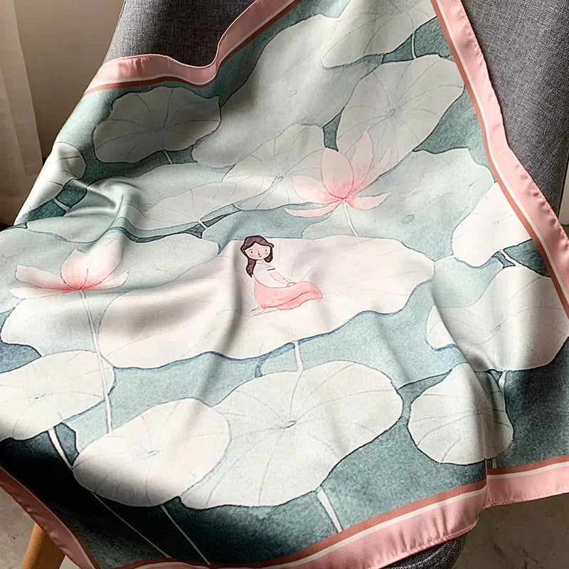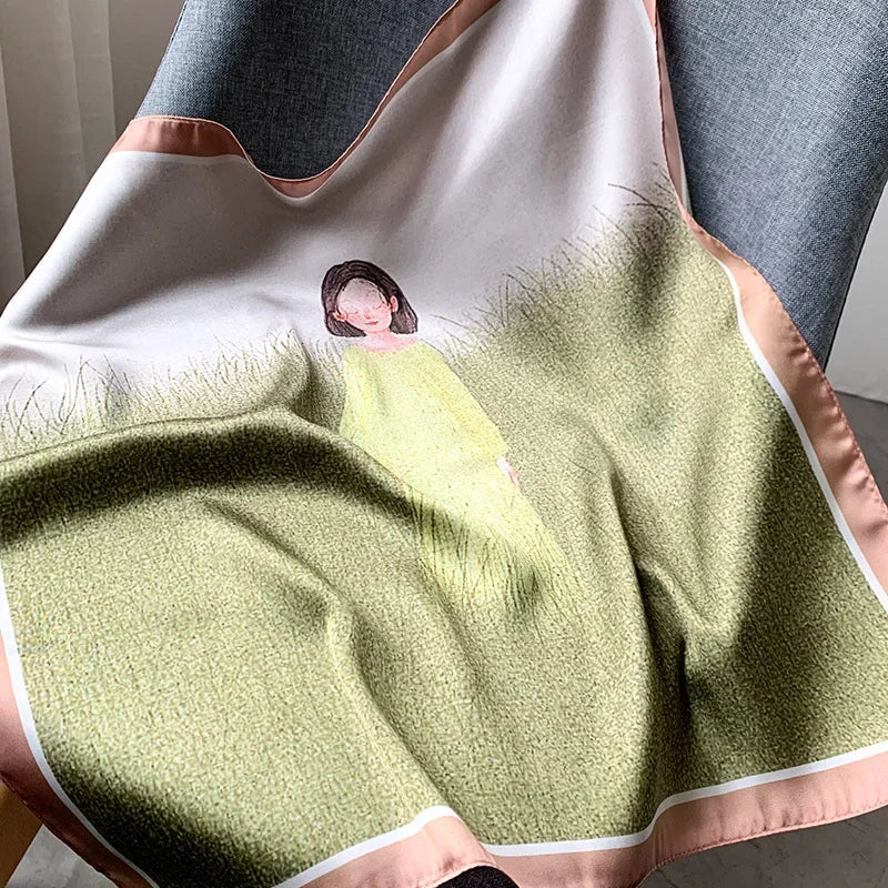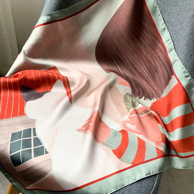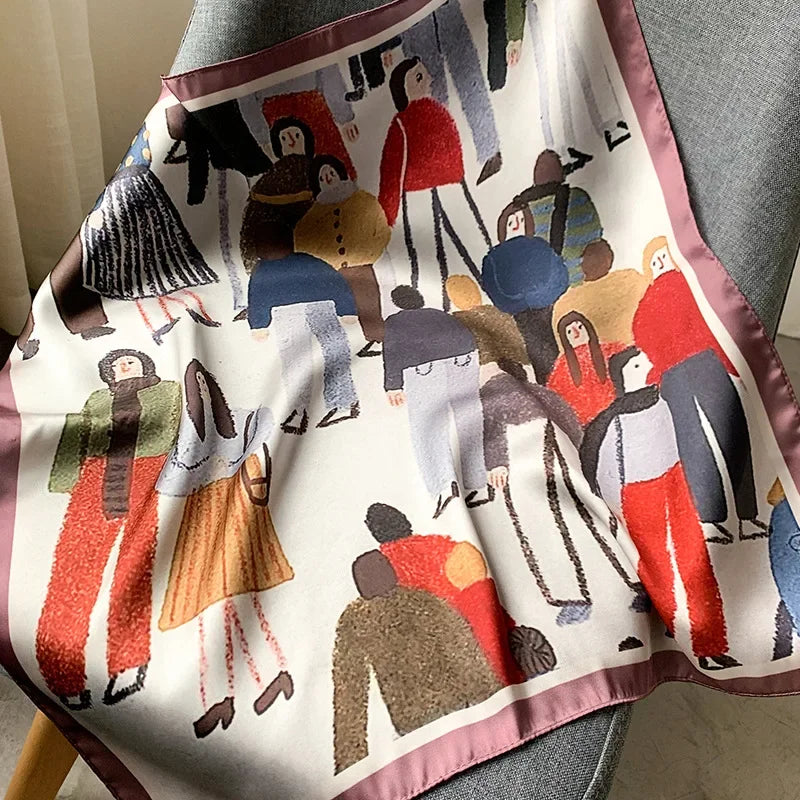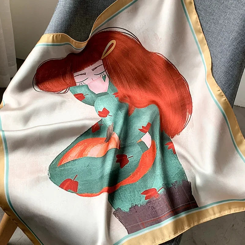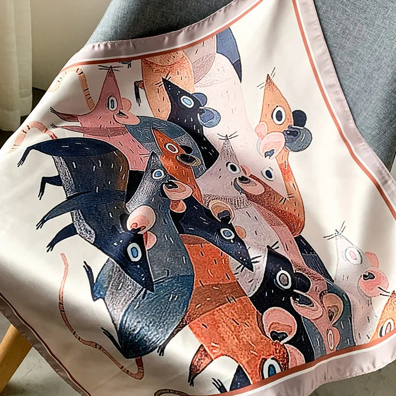 Petit foulard en satin de soie pour femmes, imprimé tendance, 53 x 53 cm, carré, pour le cou, pour le printemps