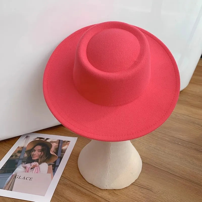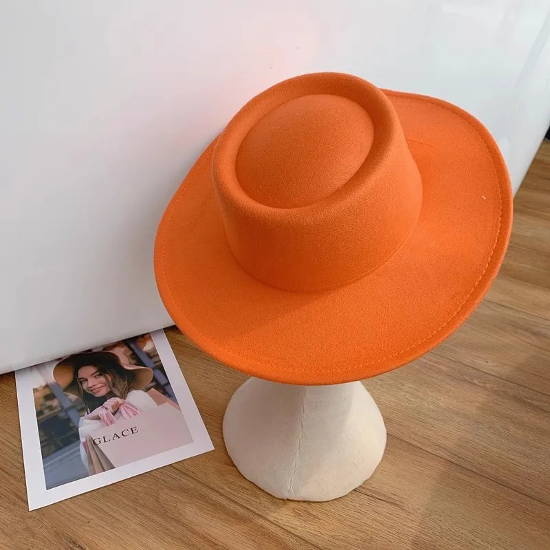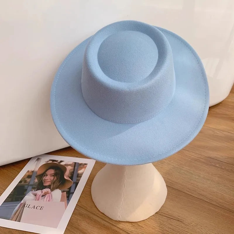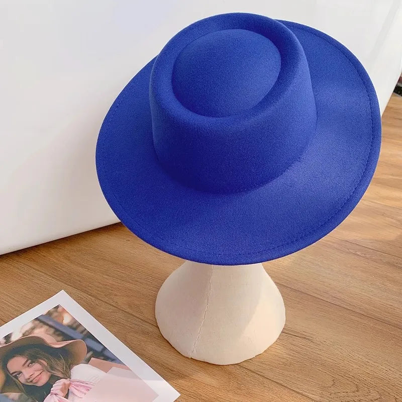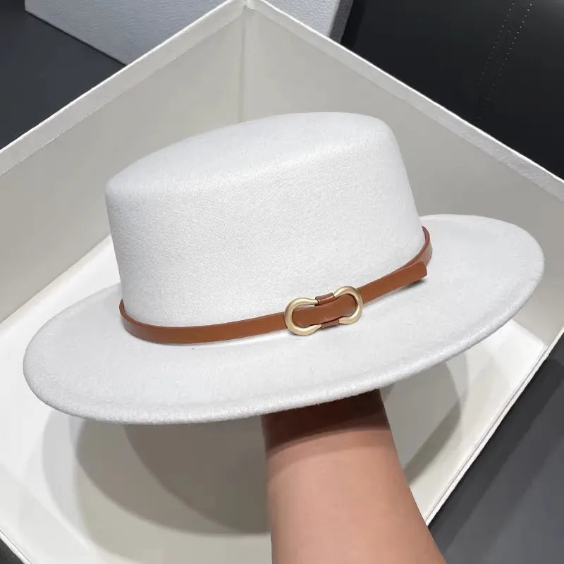 Chapeau Fedora blanc à dessus plat, haut rond, chapeau d'hiver 6cm, feutre pour hommes et femmes, mode Jazz, vente en gros