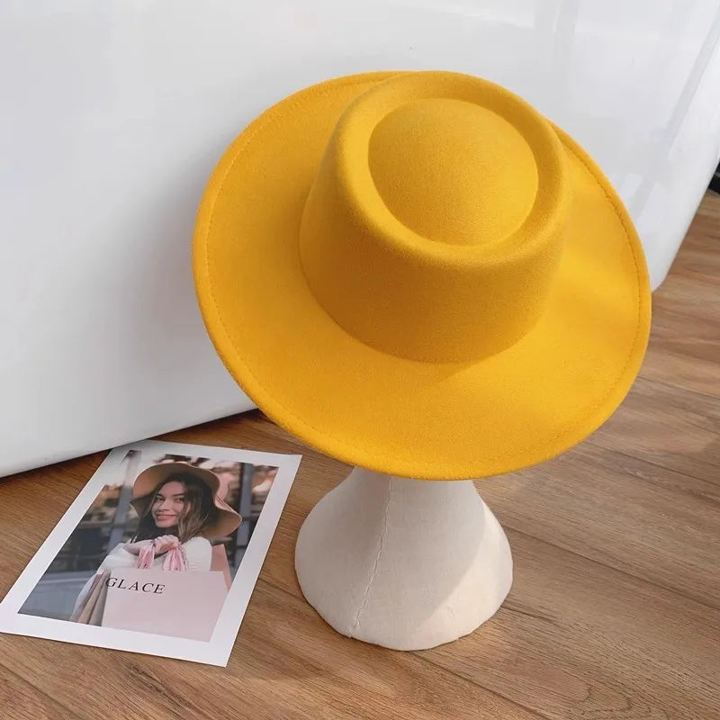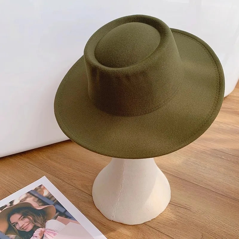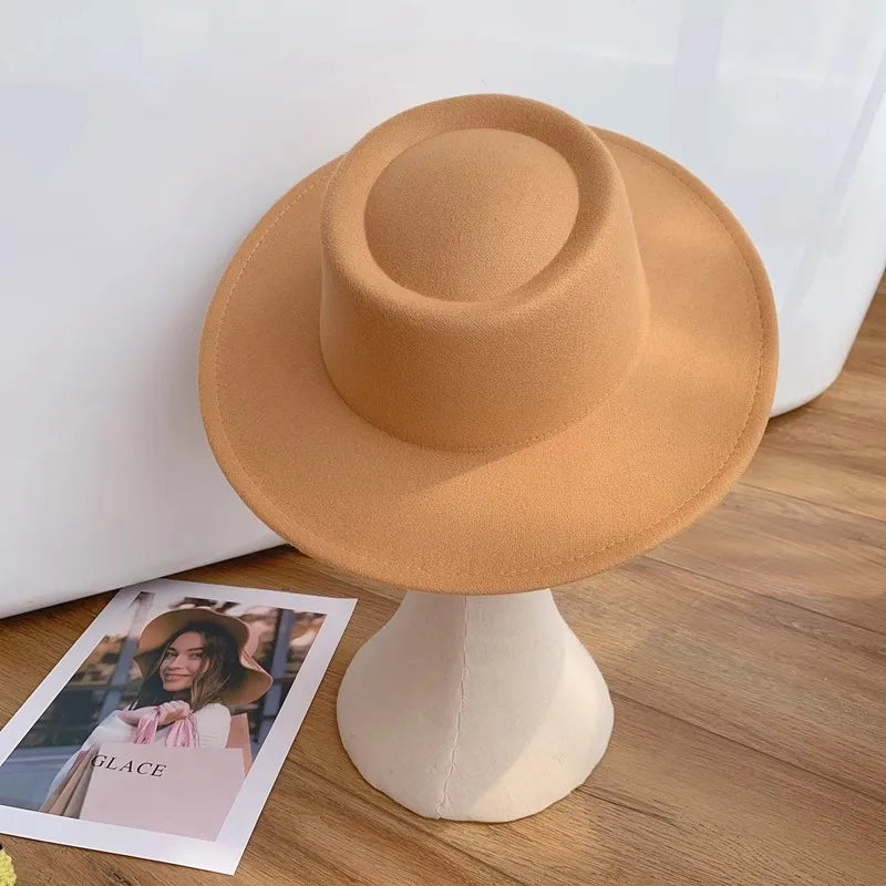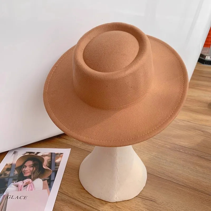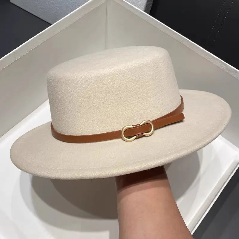 Chapeau Fedora blanc à dessus plat, haut rond, chapeau d'hiver 6cm, feutre pour hommes et femmes, mode Jazz, vente en gros