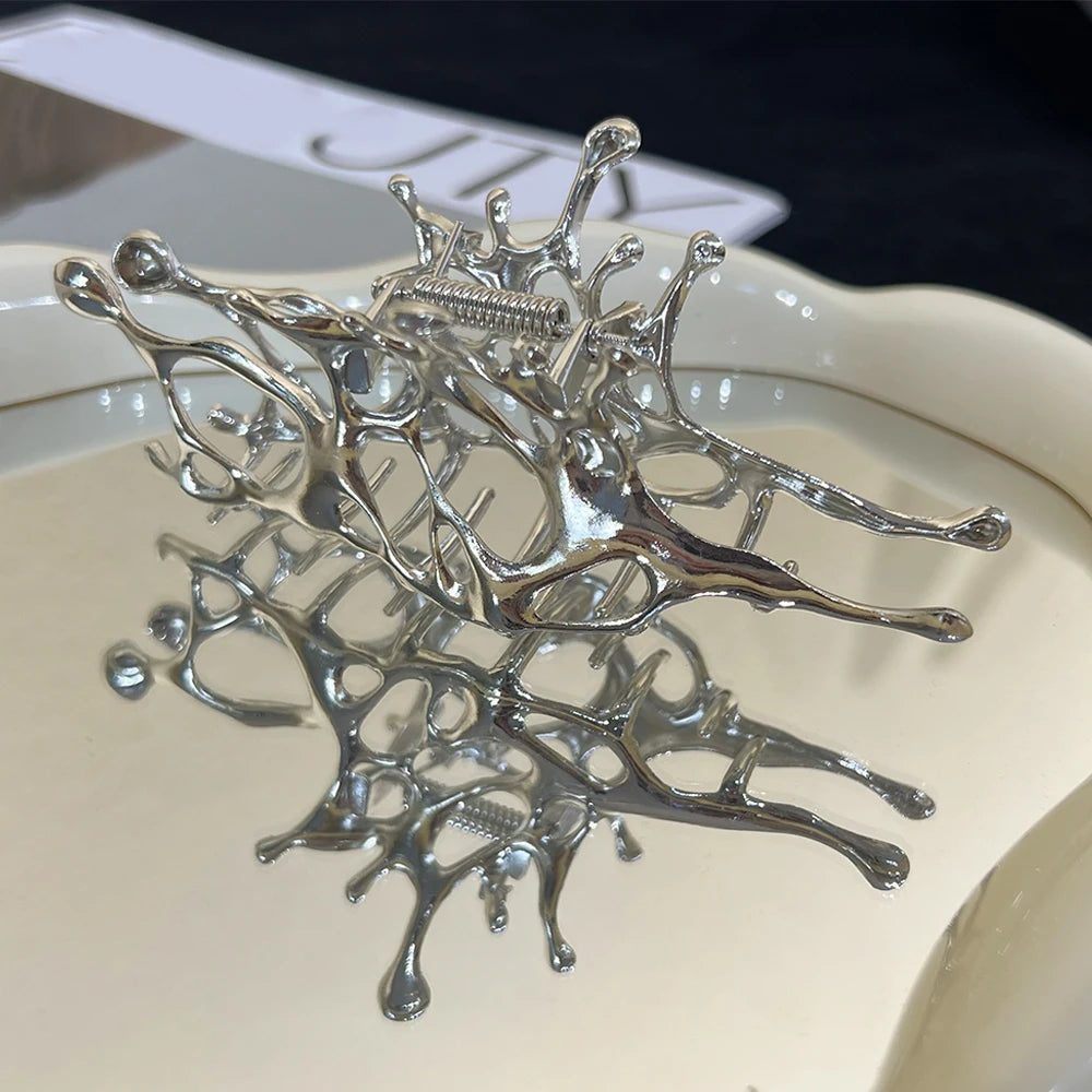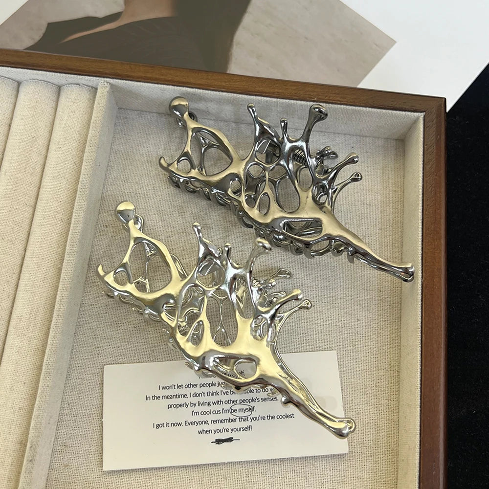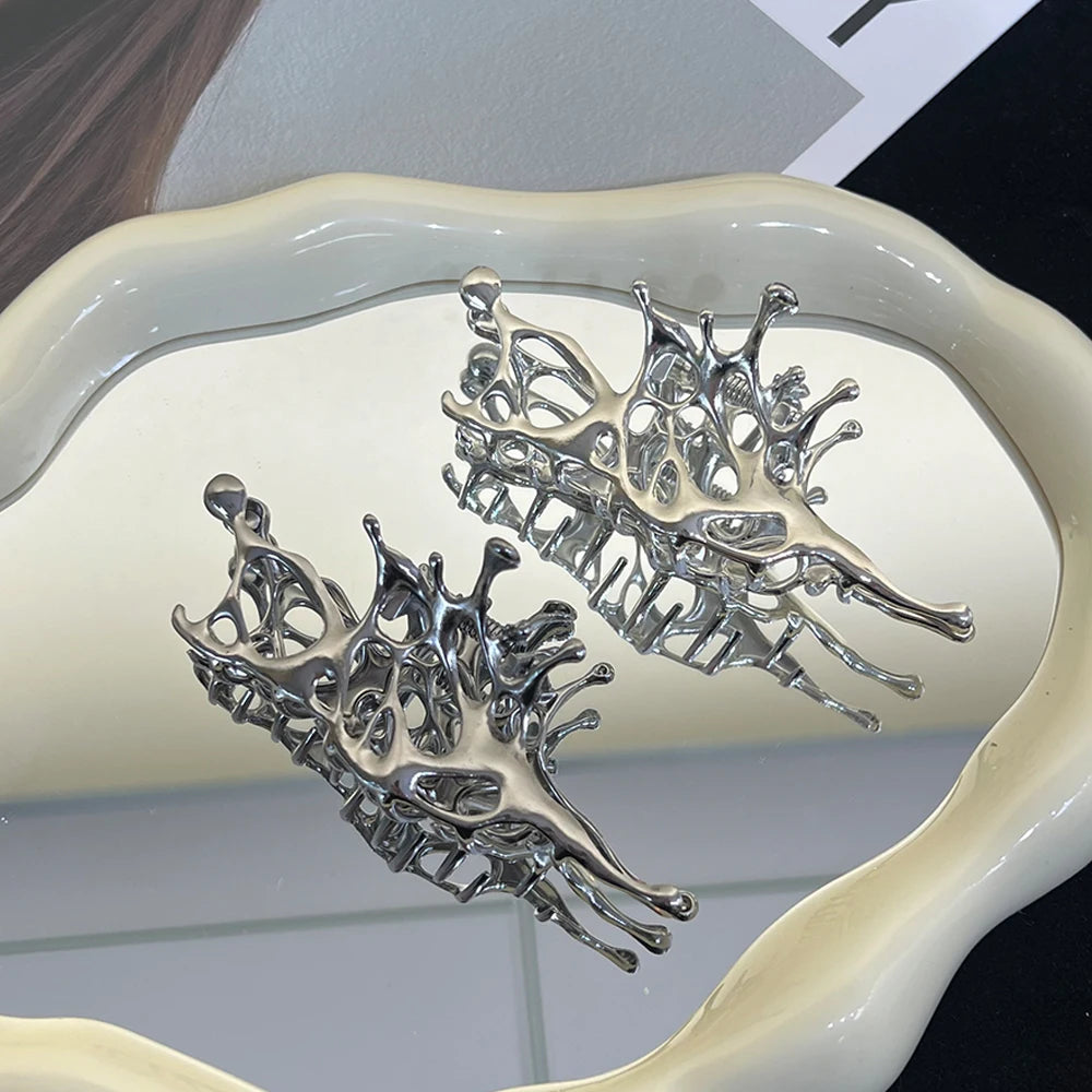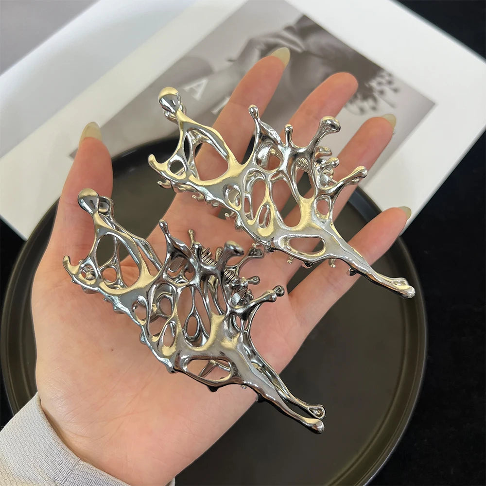 Pince à cheveux papillon en métal liquide Y2K, nouveau design tendance 2024, pince à cheveux creuse irrégulière, accessoires pour femmes - argent est en rupture de stock et sera expédié dès qu’il sera de retour en stock.