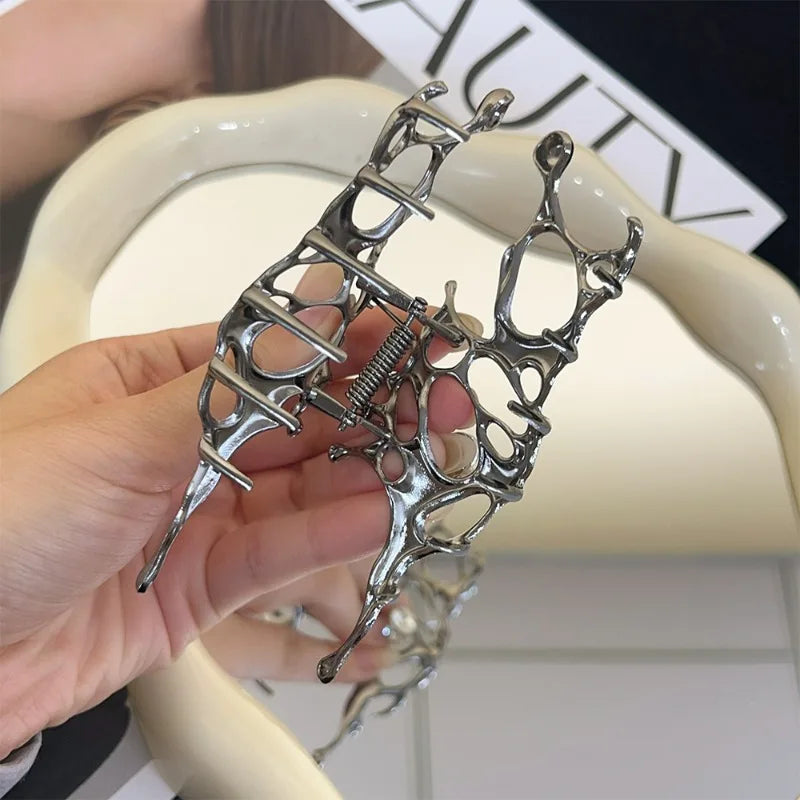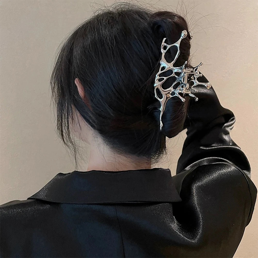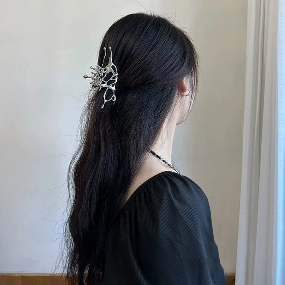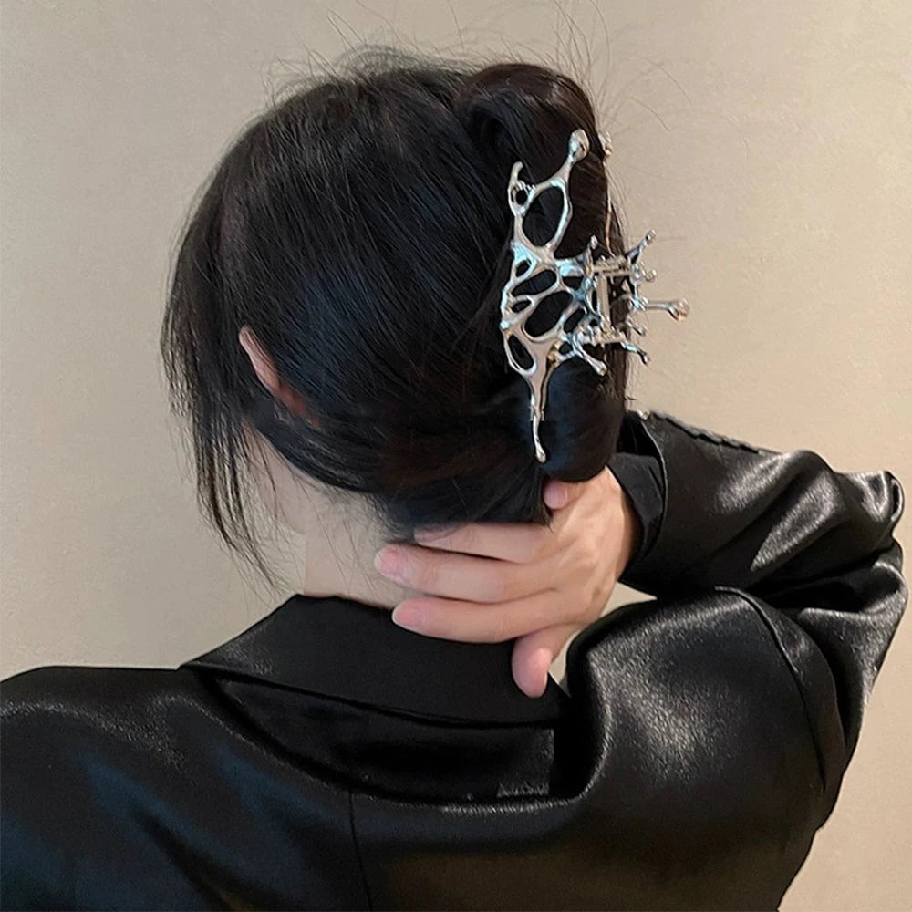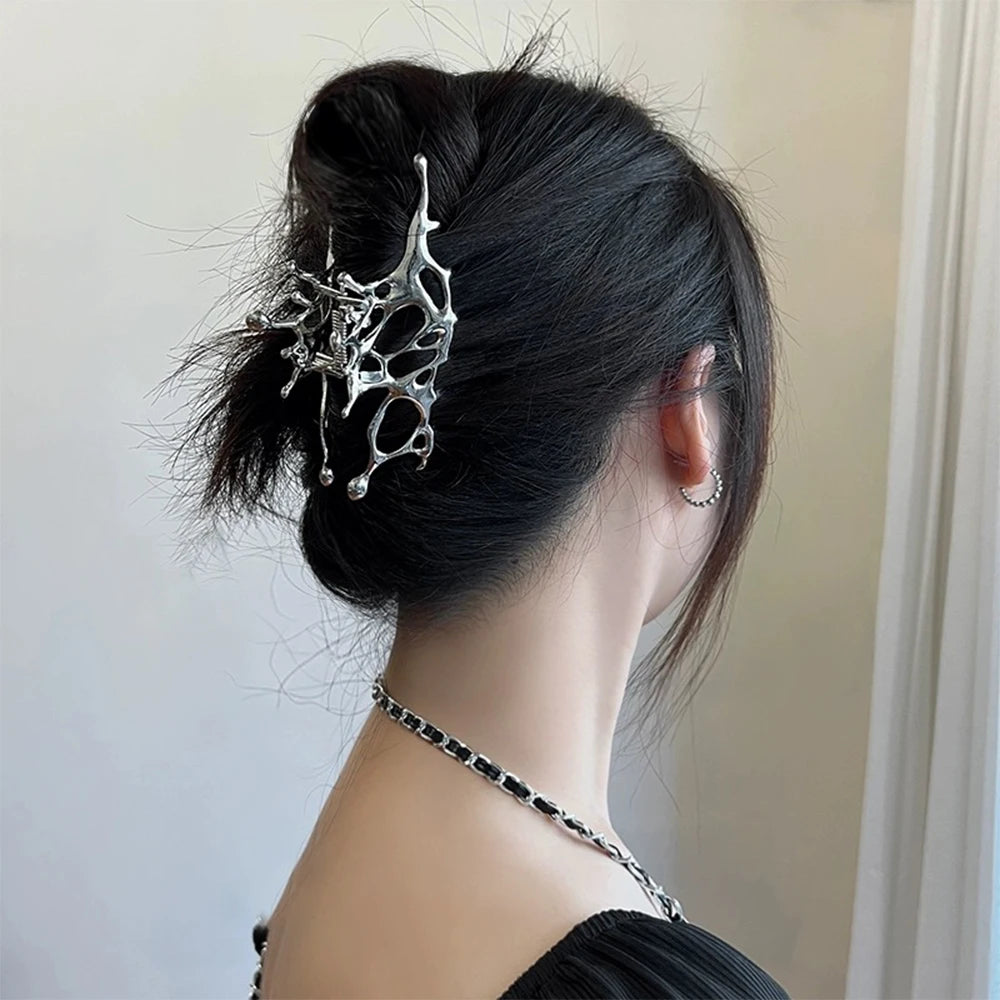 Pince à cheveux papillon en métal liquide Y2K, nouveau design tendance 2024, pince à cheveux creuse irrégulière, accessoires pour femmes - argent est en rupture de stock et sera expédié dès qu’il sera de retour en stock.