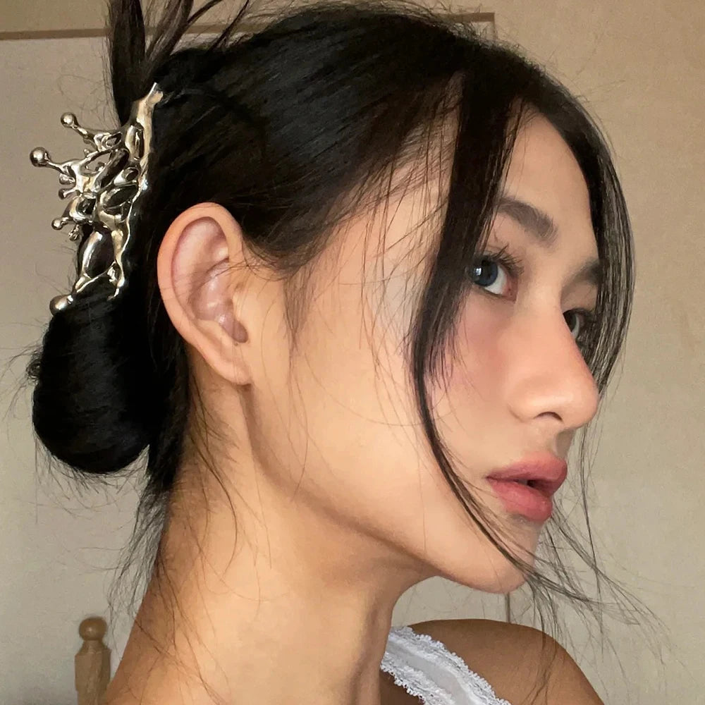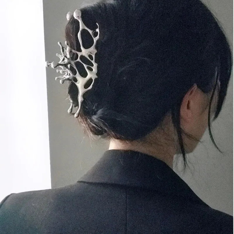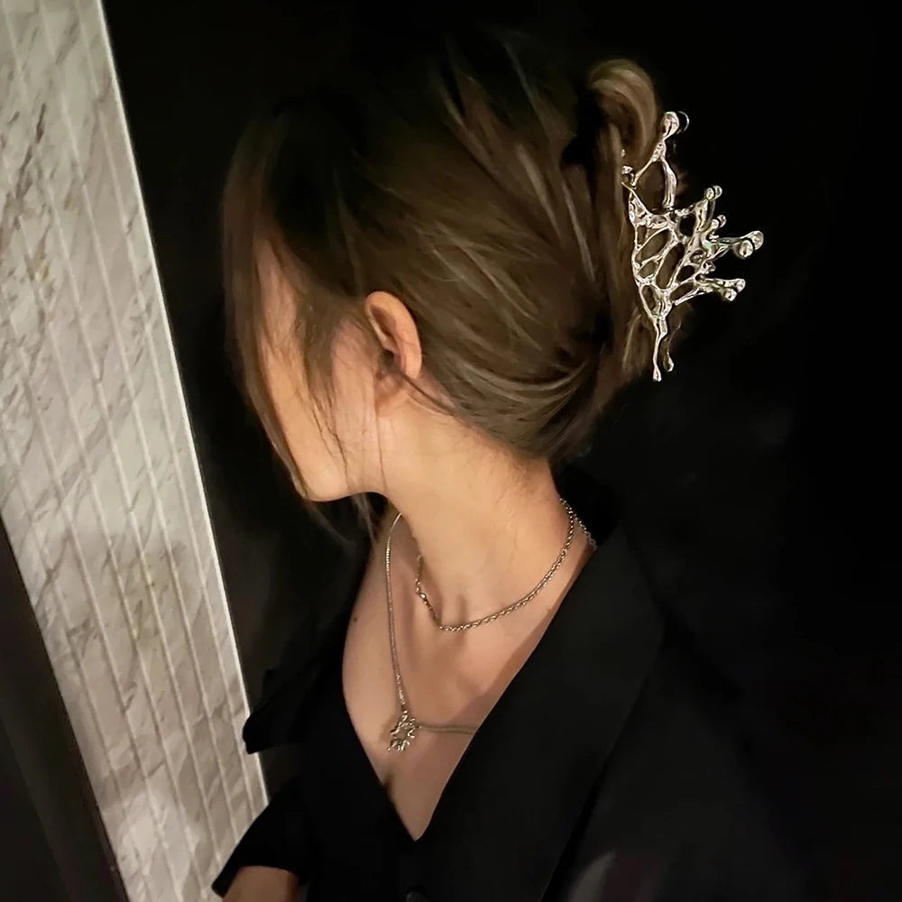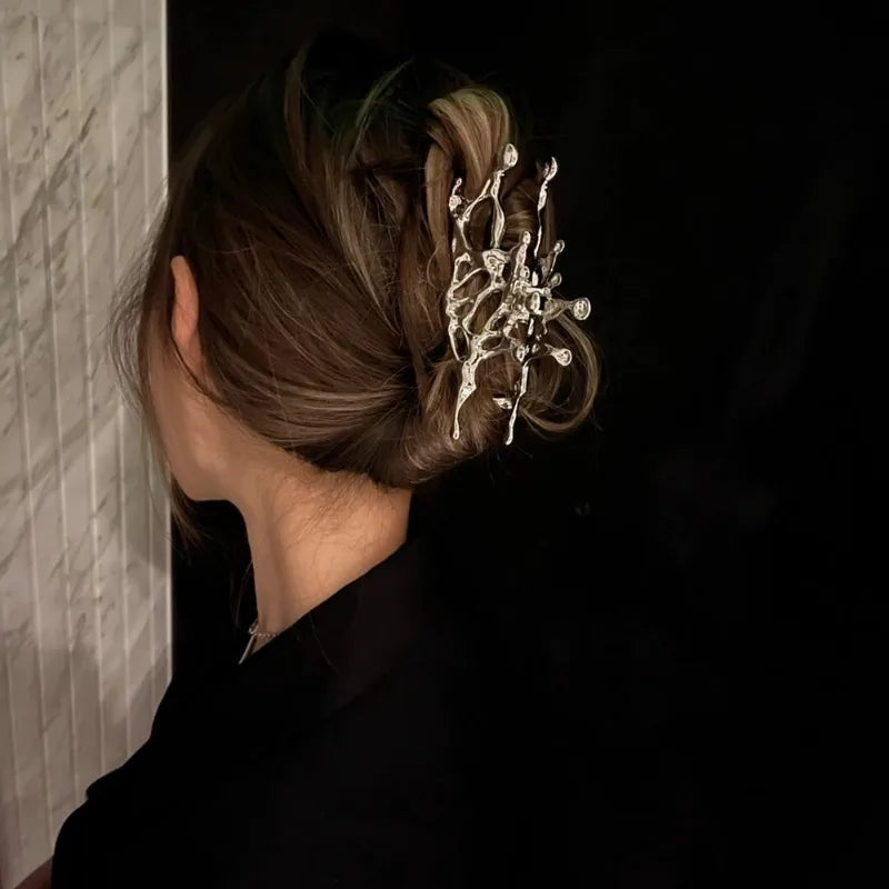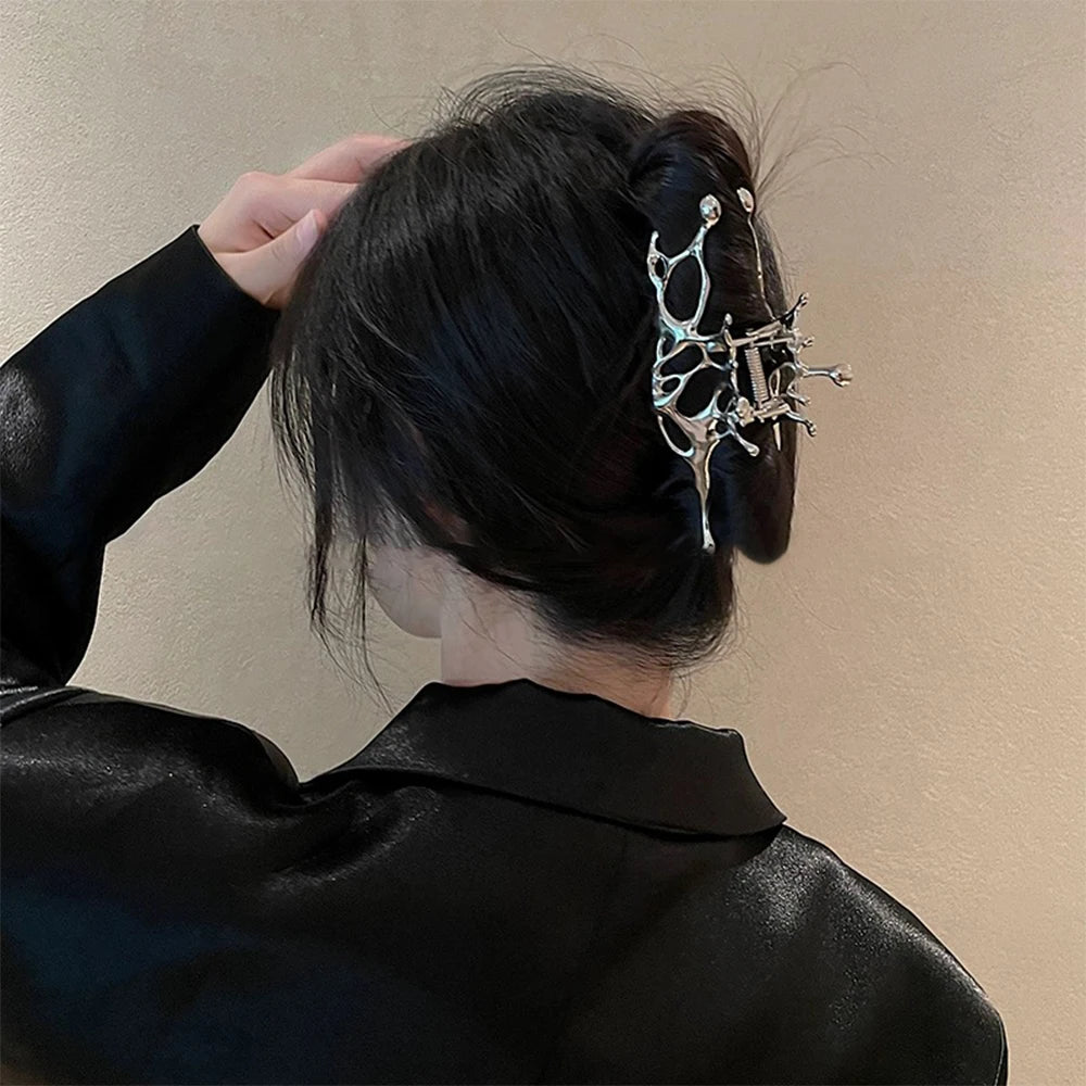 Pince à cheveux papillon en métal liquide Y2K, nouveau design tendance 2024, pince à cheveux creuse irrégulière, accessoires pour femmes - argent est en rupture de stock et sera expédié dès qu’il sera de retour en stock.