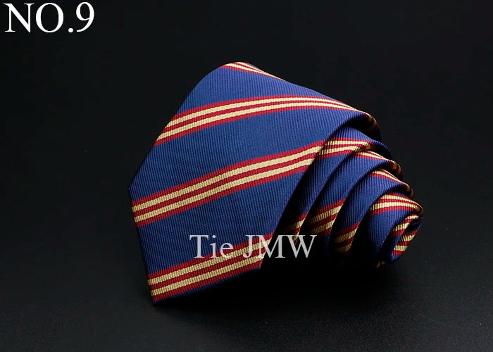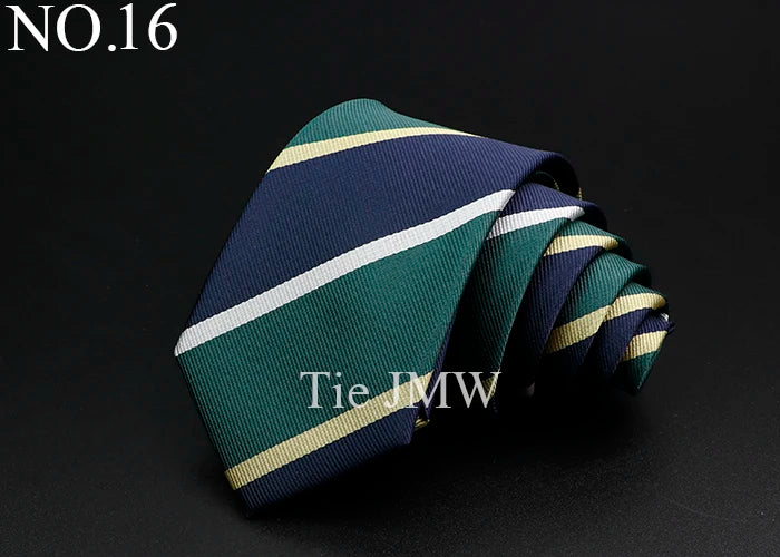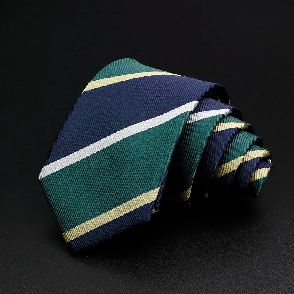 Nouvelle cravate classique à rayures pour homme, 7 cm, jacquard, rouge, bleu, vert, à porter au quotidien, accessoire pour robe de soirée, cadeau pour homme