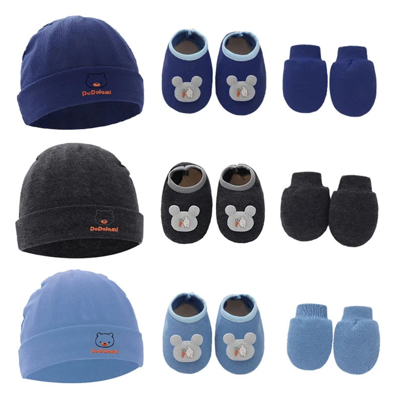 1 ensemble de gants anti-rayures pour bébé, chapeau, couvre-pieds, ensemble de mitaines en coton doux pour nouveau-né, chaussettes, bonnets, bonnet de nuit