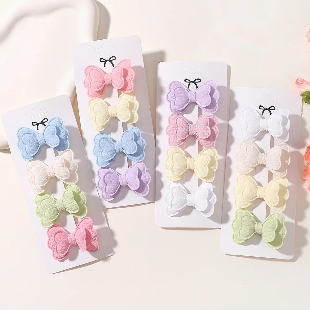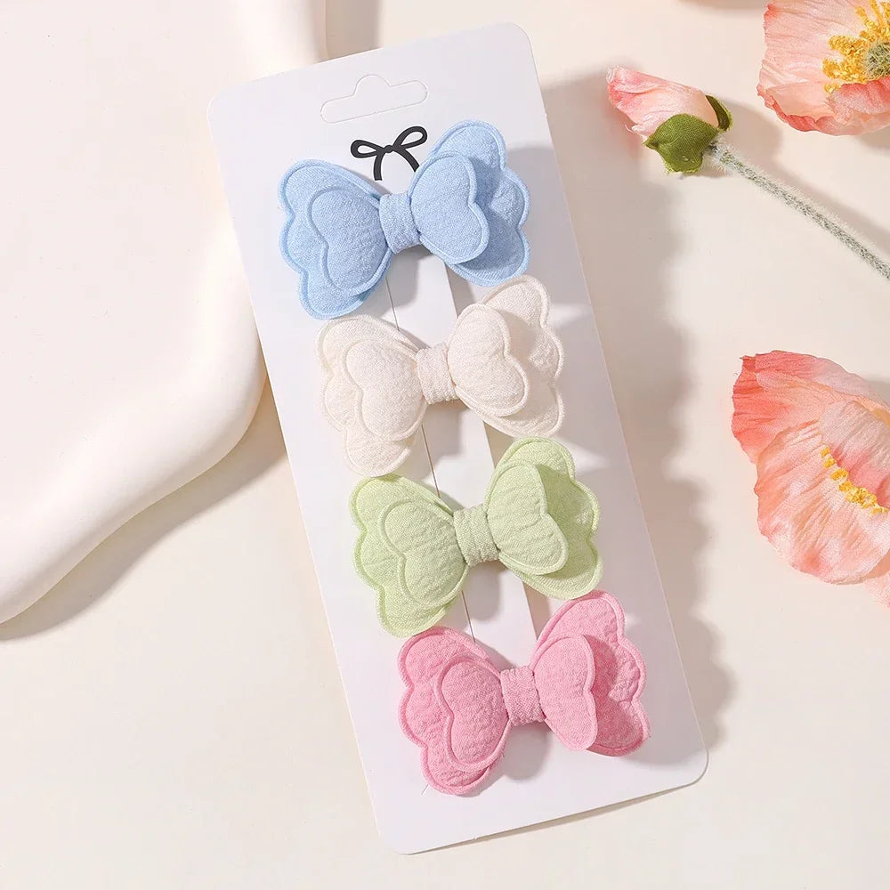 Lot de 4 pinces à cheveux colorées pour filles, nœud double couche, jolies franges, épingles à cheveux en coton, accessoires pour cheveux de bébé, sans danger pour enfants