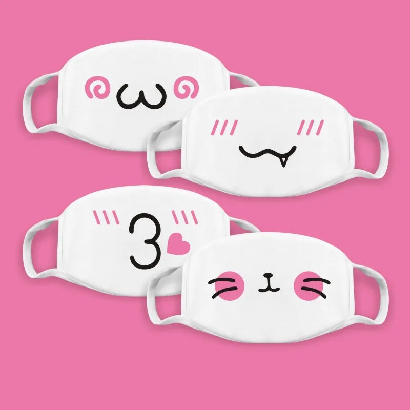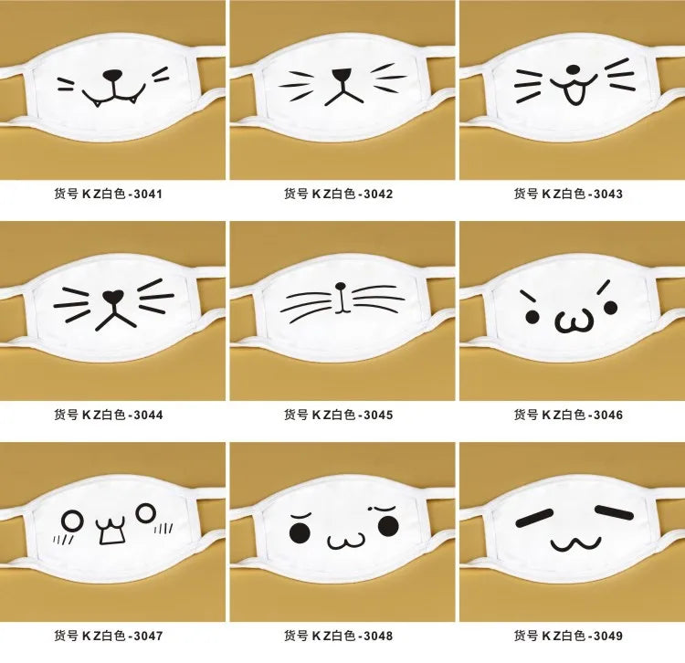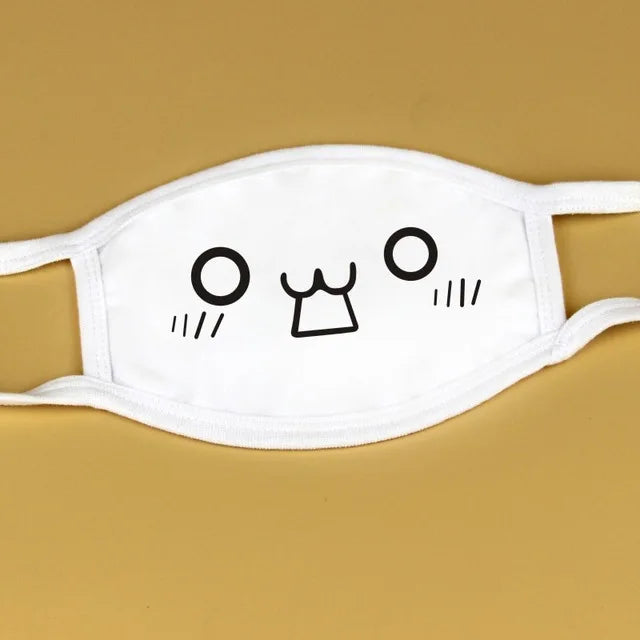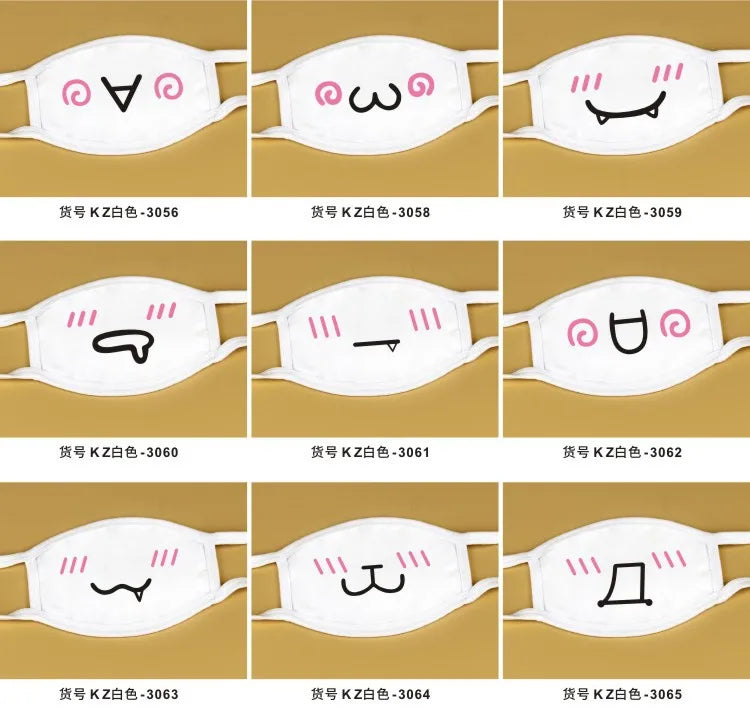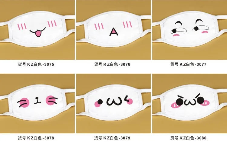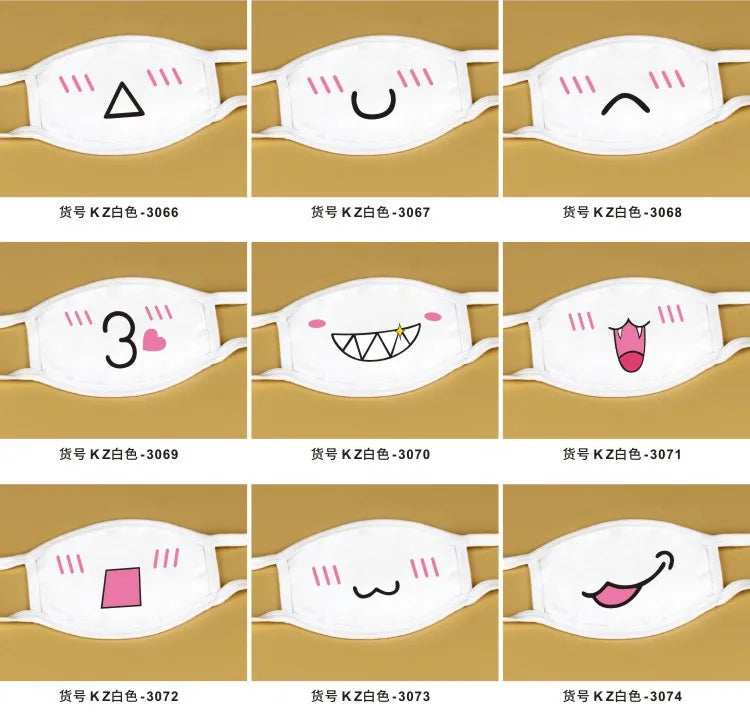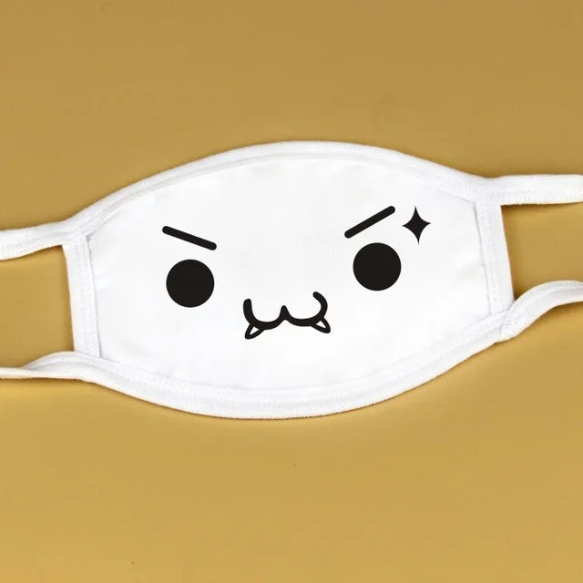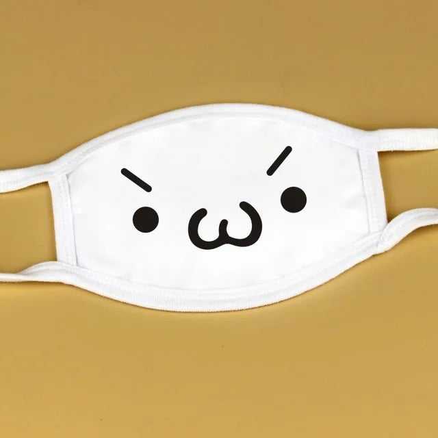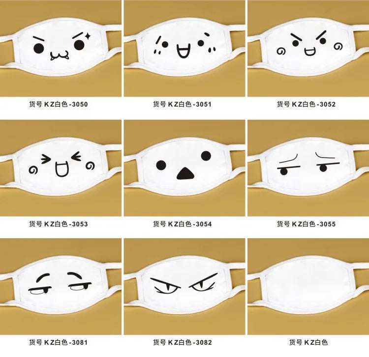 Masque facial en coton blanc Kawaii, motif humoristique, anti-poussière, pour la Kpop coréenne, unisexe