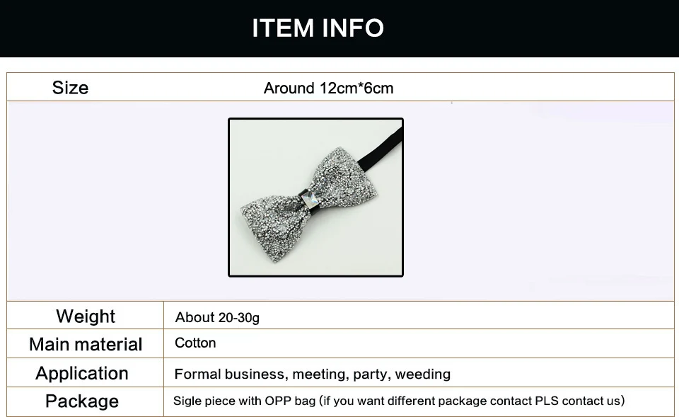 Matière : polyester Taille : longueur : 12 cm (4,72 pouces) Largeur : 6 cm (2,36 pouces) Emballage : 1 pièce/sac en polyéthylène, ou vous pouvez acheter un coffret cadeau dans notre magasin Service d'étiquettes de cravate : contactez-nous pour des frais supplémentaires Service ODM et OEM : oui avec une excellente qualité et un prix compétitif