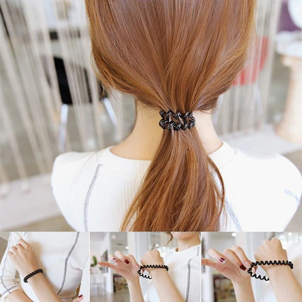 Telephone Wire Elastic Clear Hair Bands Plastic Spring Gum For Hair Ties No Crease Coil Hair Tie Ponytail Hair Accessories - black est en rupture de stock et sera expédié dès qu’il sera de retour en stock.