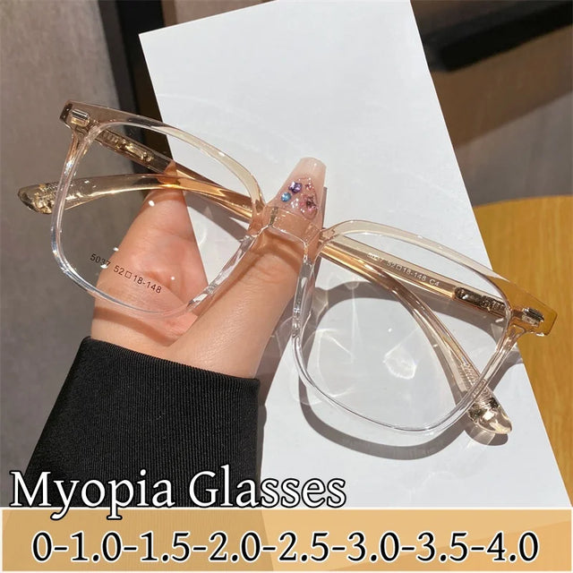 Blue Light Blocking Ladies Square Myopia Glasses New Trendy Finished Near Sight Eyeglasses Prescription Minus Eyewear Diopter