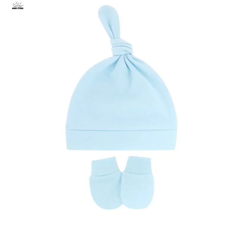 Newborn Baby Hat with Gloves Autumn Winter Warm Cotton Kids Beanies Stuff Children Accessories Infant Nightcap 0-6 Months Babies